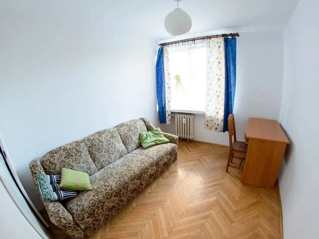 Większe pokoje i loggia z oknami skierowanymi na cichy wewnętrzny skwer z zielenią.
