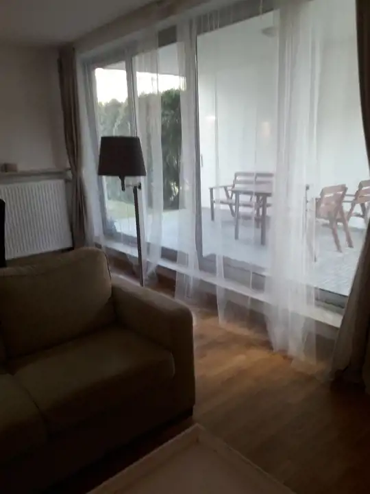 W apartamencie mozna poczuć się jak w parterowym domu jednorodzinnym, a w ogrodzie pełna prywatnosć.