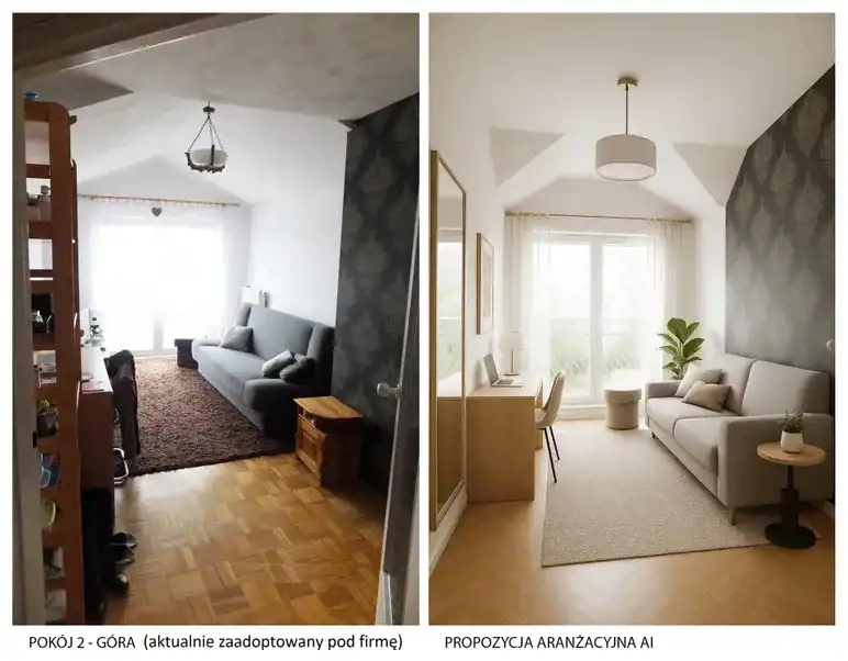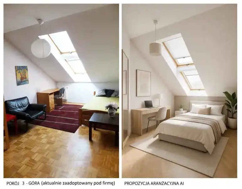 · Góra zaadoptowana aktualnie pod firmę (stan widoczny na zdjęciach 2 pokojów uległ zmianie)