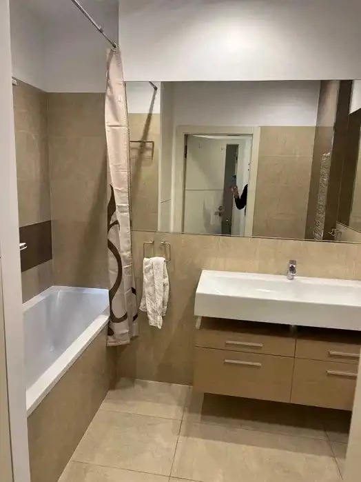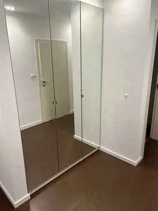 Mieszkanie jest odświeżone, w pełni umeblowane (kuchnia ze sprzętem AGD, szafy wnękowe, łóżko, kanapa, komody, pralka), klimatyzacja zamontowana w salonie.