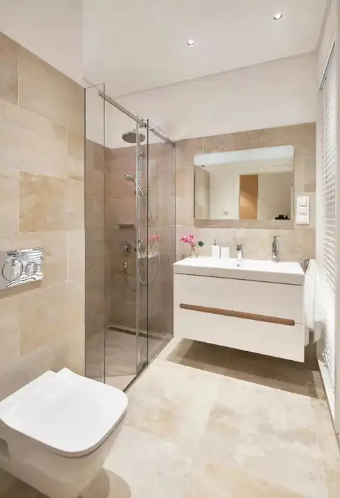 - Każdy pokój ma własną łazienkę z prysznicem, piękną drewnianą podłogę