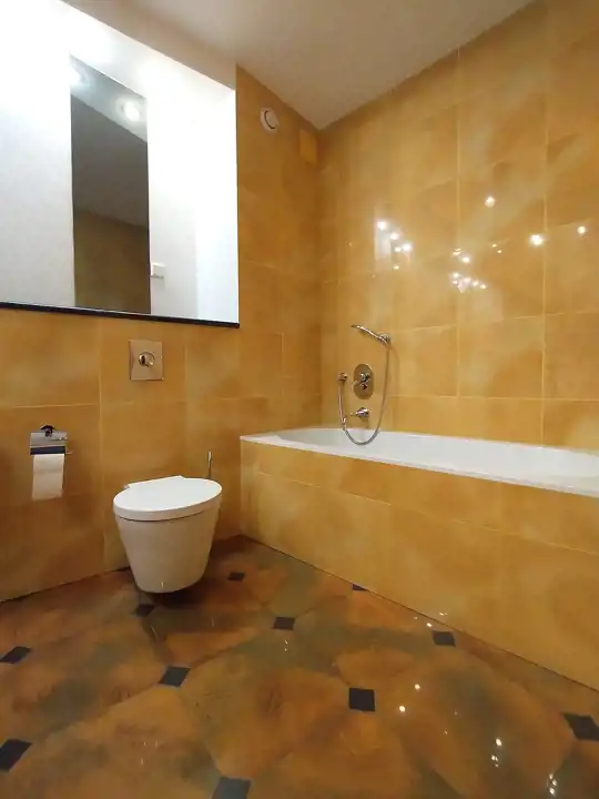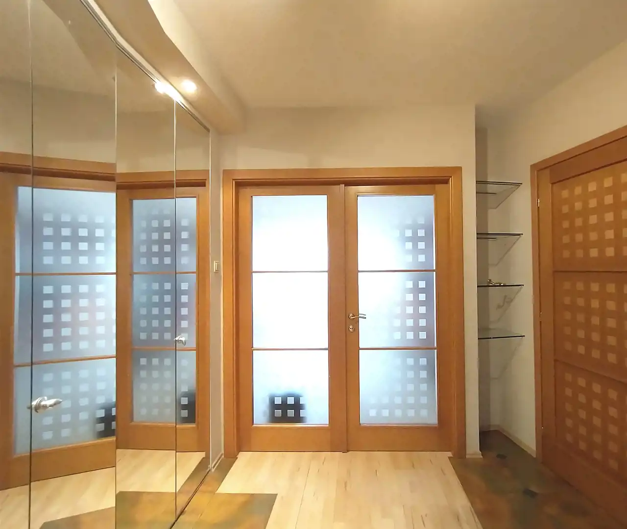 Mieszkanie o charakterze apartamentowym w budynku „Pod Orłem”, posiadające 2 sypialnie (19 i 17 mkw), salon 38mkw z przejściem do kuchni 13mkw, 2 łazienki (6 i 7,5mkw) i garderobę (2,9mkw) przy większej sypialni.