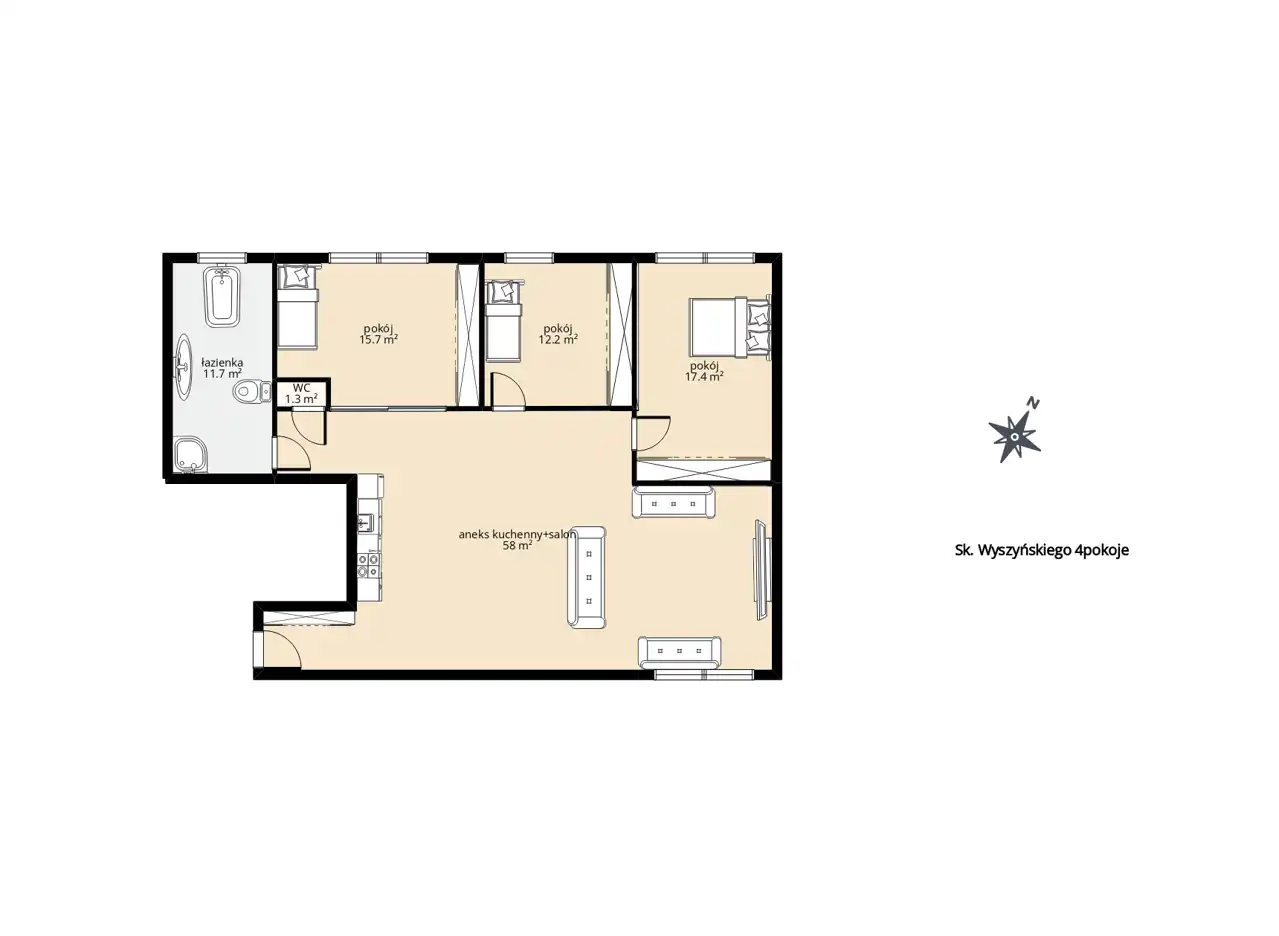 - Charakterystyka mieszkania 120 m2, 4 pokoje