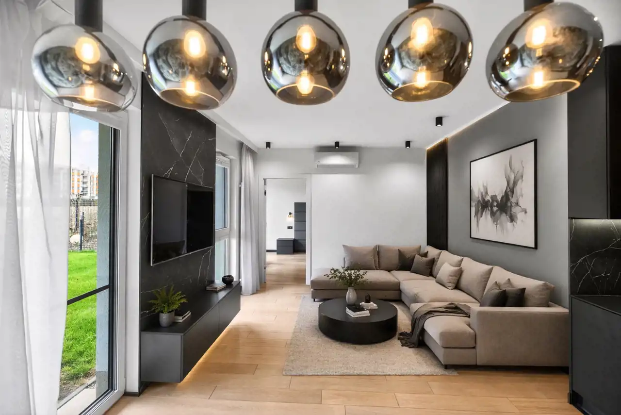 Całość tworzy wnętrze o standardzie premium, gotowe do wprowadzenia bez konieczności ponoszenia dodatkowych nakładów. Mieszkanie przygotowane jest do zamieszkania - wyposażone jest w zabudowę stałą (bez telewizora oraz bez mebli ruchomych w salonie oraz sypialni).