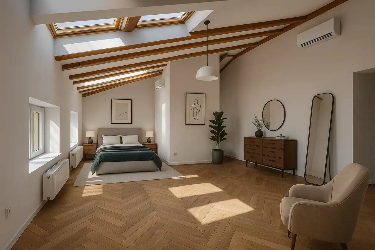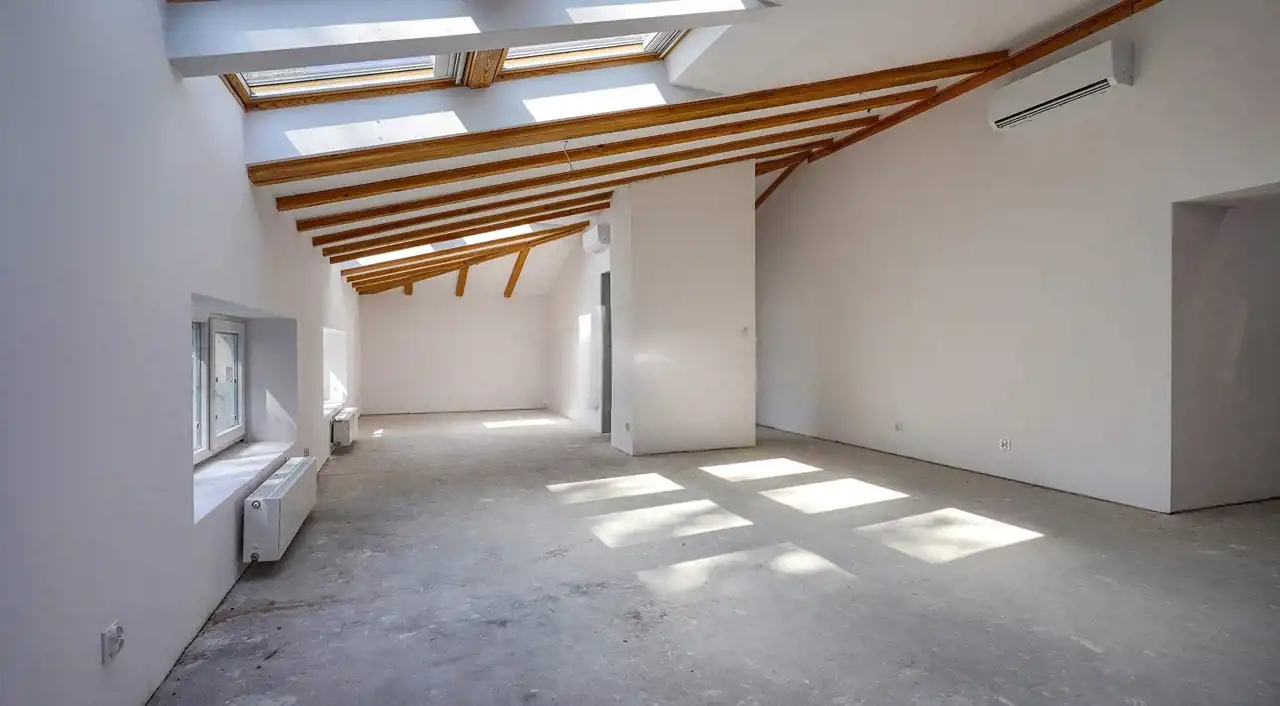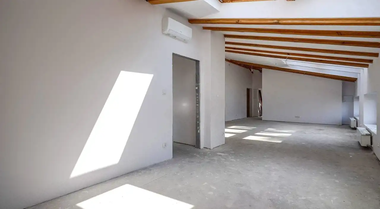 MIESZKANIE - stan developerski, nowe ściany, posadzki, nowe okna, dużo okien dachowych z automatycznymi roletami, bardzo jasne, okna - południe i zachód, nowe drzwi antywłamaniowe. Dla podwyższenia komfortu w każdym pomieszczeniu klimatyzacja. Wysokość 3,5m !!!! wysokość max 4,5m!!! są niewielkie skosy.