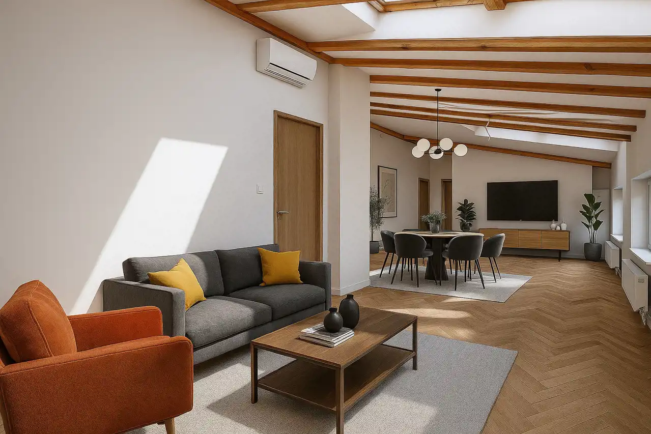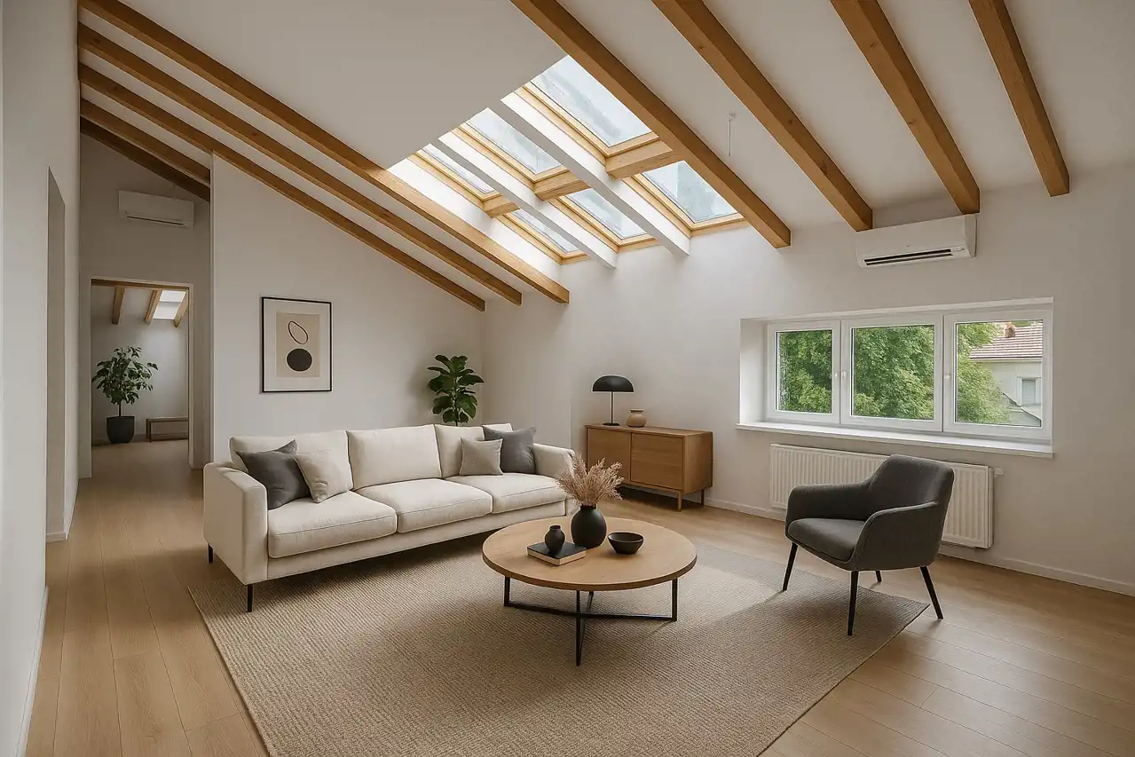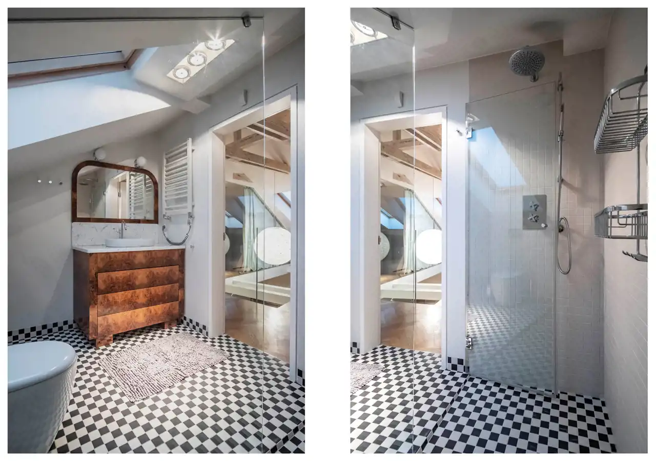 MIESZKANIE - stan developerski, nowe ściany, posadzki, nowe okna, dużo okien dachowych z automatycznymi roletami, bardzo jasne, okna - południe i zachód, nowe drzwi antywłamaniowe. Dla podwyższenia komfortu w każdym pomieszczeniu klimatyzacja. Wysokość 3,5m !!!! wysokość max 4,5m!!! są niewielkie skosy.