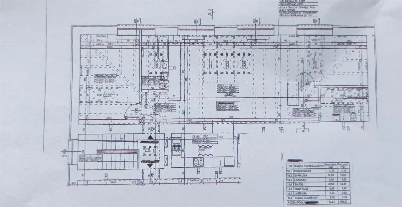 Podana powierzchnia po podłodze, powierzchnia w KW - 94,5m.