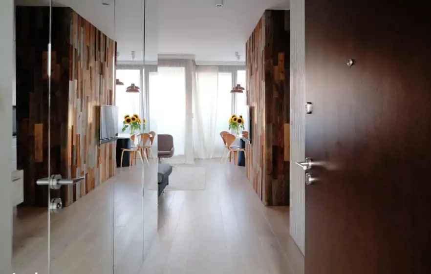 Hol wejściowy z zabudowanymi szafami na odzież wierzchnią.