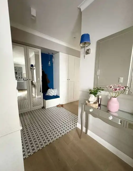 Dzięki panoramicznemu układowi okien, mieszkanie cieszy się doskonałym doświetleniem przez cały dzień, co wpływa na komfort codziennego życia. Projekt wnętrza został stworzony przez profesjonalnego architekta już na etapie budowy, co pozwoliło na optymalizację układu oraz starannie przemyślane rozwiązania dotyczące oświetlenia i instalacji elektrycznej.
