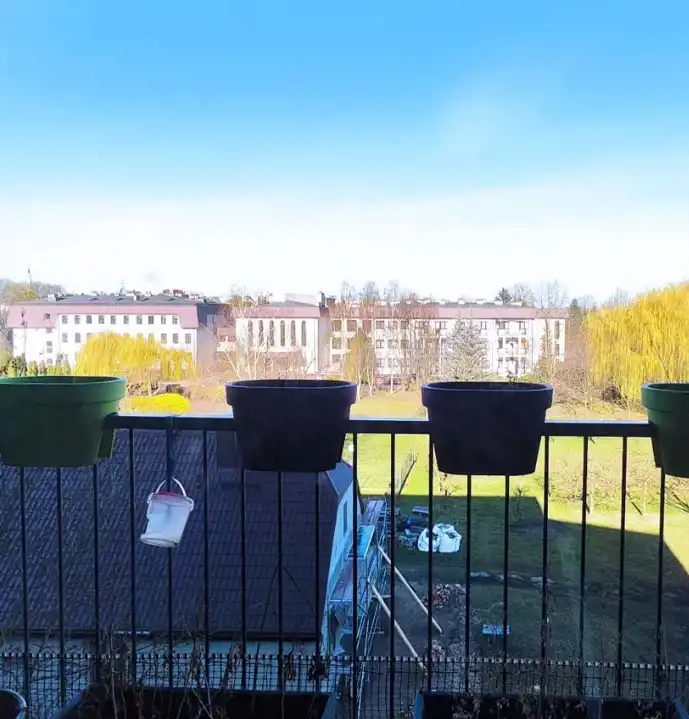 Mieszkanie bardzo widne, w otoczeniu natury, z daleka od ruchu samochodowego.