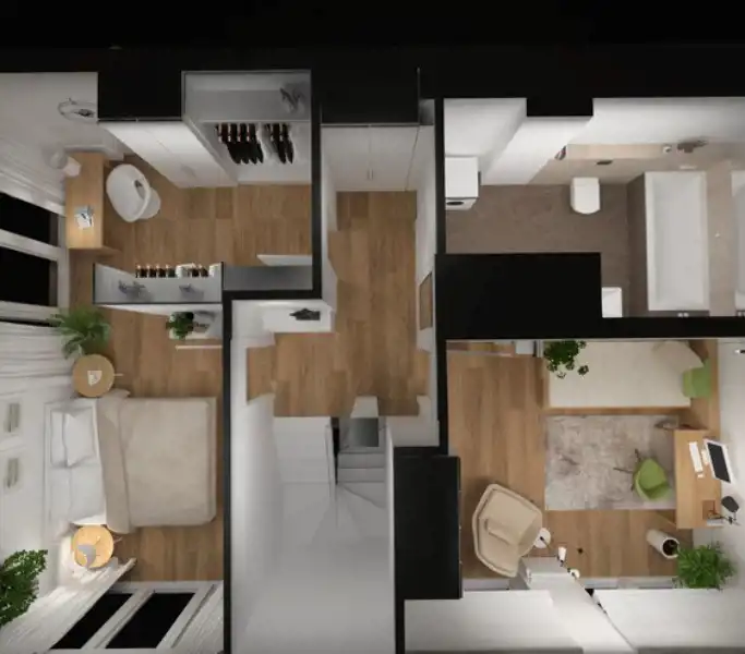 Poziom 2 Sypialnia 19,5 m (obecnie), możliwość podzielenia na dwa pokoje 10,5m oraz 9m