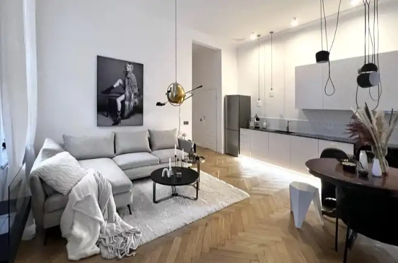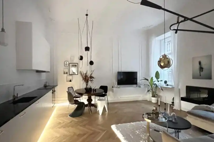 Apartament po generalnym remoncie, zaprojektowany i wykończony z dbałością o najmniejsze szczegóły. W pełni wyposażony. Wysokość pomieszczeń 3,5m!!! Na podłodze parkiet dębowy, okna drewniane skrzynkowe, w pełni wyposażona kuchnia (lodówka, zmywarka, płyta, piekarnik, okap). Bardzo funkcjonalny układ mieszania: salon z aneksem kuchennym (27 m2), łazienka (3,8 m2), WC (1,2 m2), sypialnia (12 m2), pokój (10 m2) przedpokój (10 m2). Po remoncie w mieszkaniu nikt nie mieszkał.