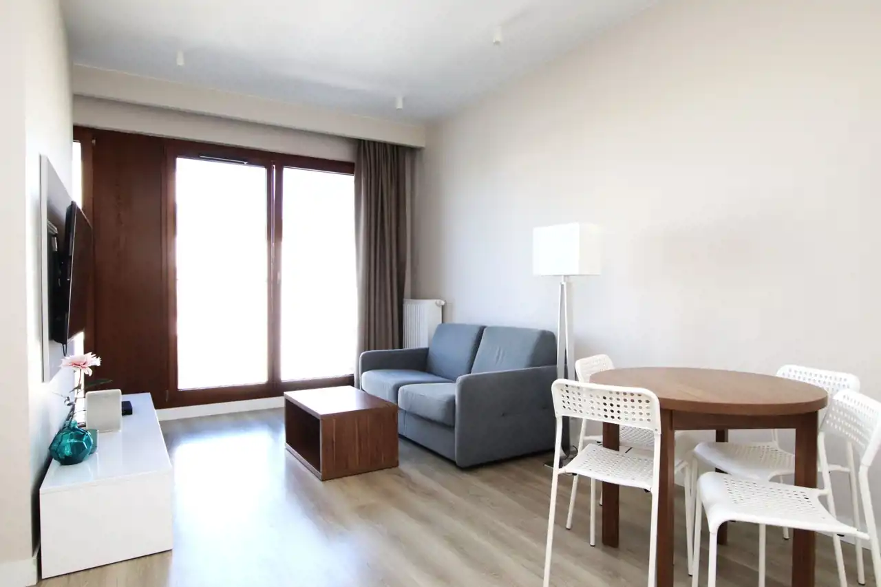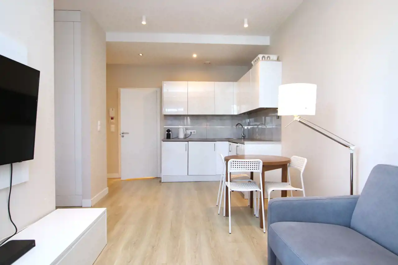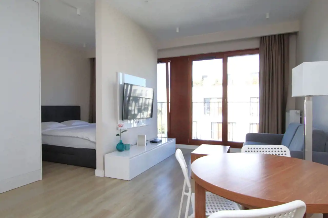 - salon z aneksem kuchennym i wydzieloną sypialnią,
