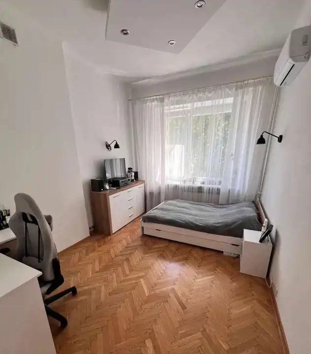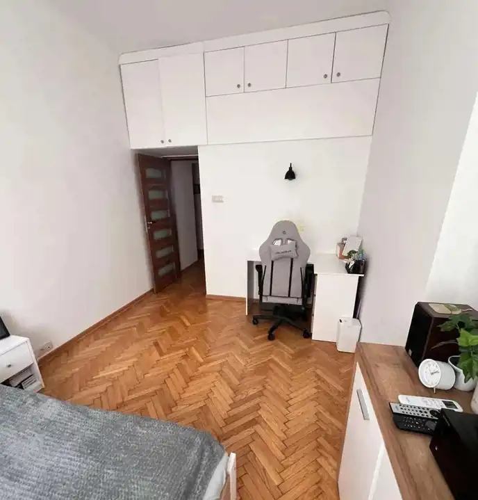 Mieszkanie wyróżnia się oryginalnym dębowym parkietem w jodełkę (nie panelami), który został zachowany w bardzo dobrym stanie.