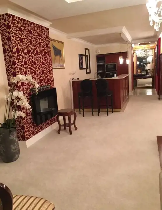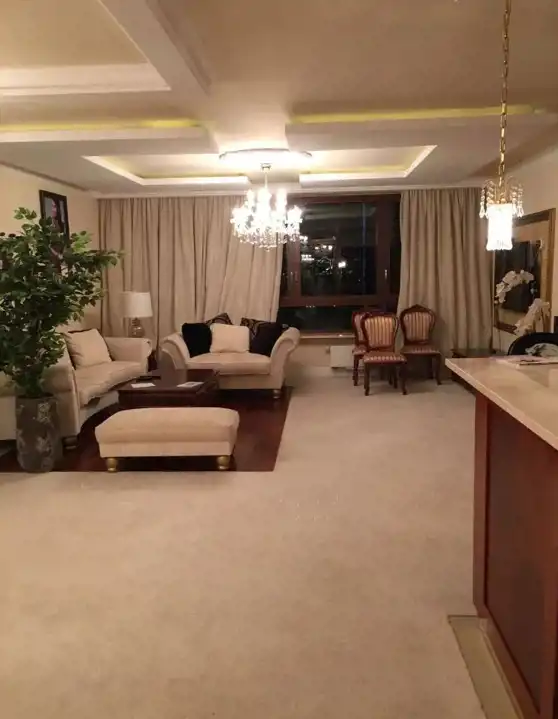 Ekskluzywny apartament wykończony drogimi materiałami, z armaturą najlepszych włoskich i niemieckich firm. Kącik barowy z pełną zabudową wysokiej jakości, wyposażony w zabudowaną lodówkę, zintegrowaną mikrofalę z piekarnikiem, zmywarkę. Łazienka z WC z wanną. Dodatkową przestrzenią jest garderoba. Na podłodze drewno, wykładzina, terakota.