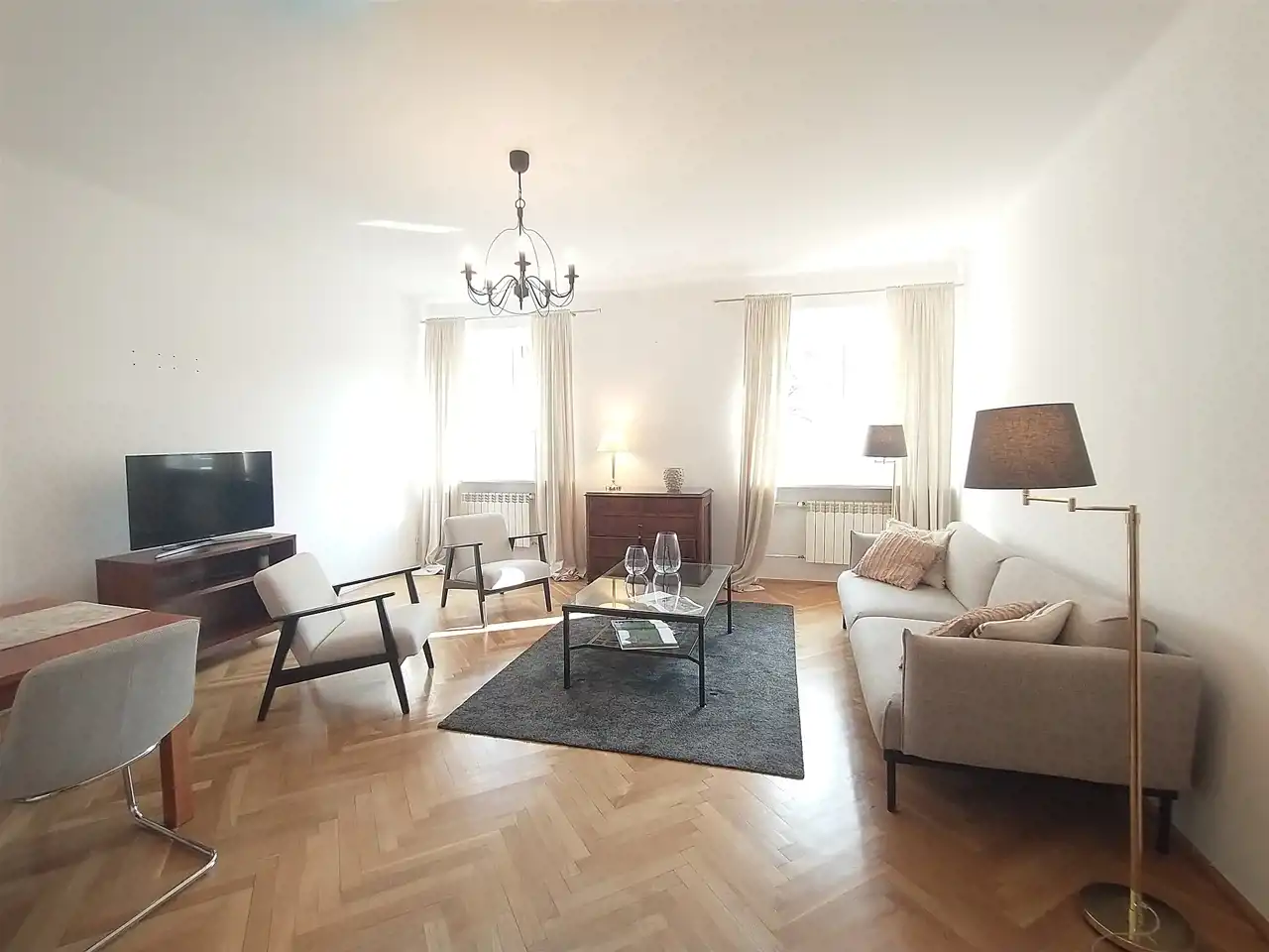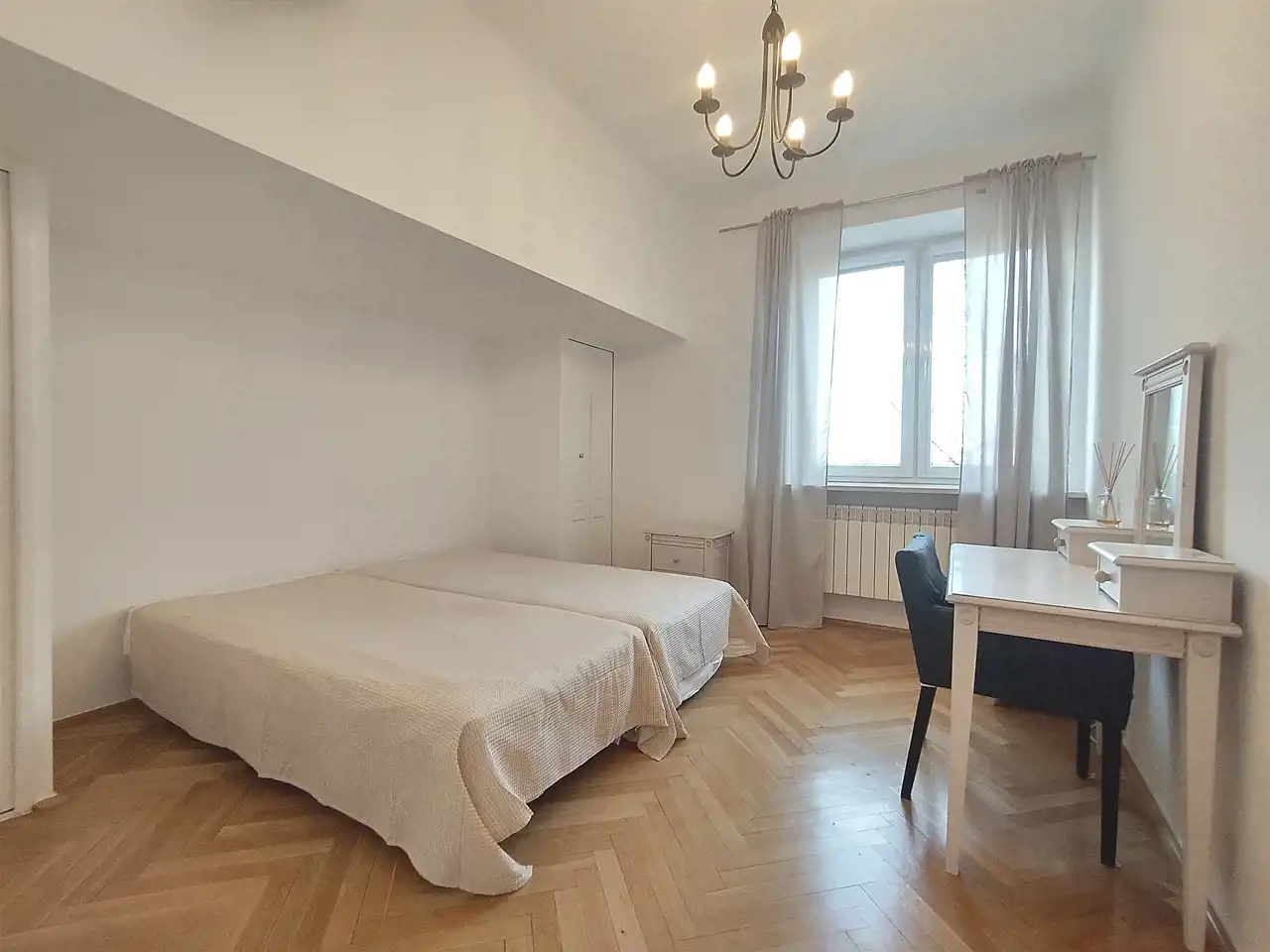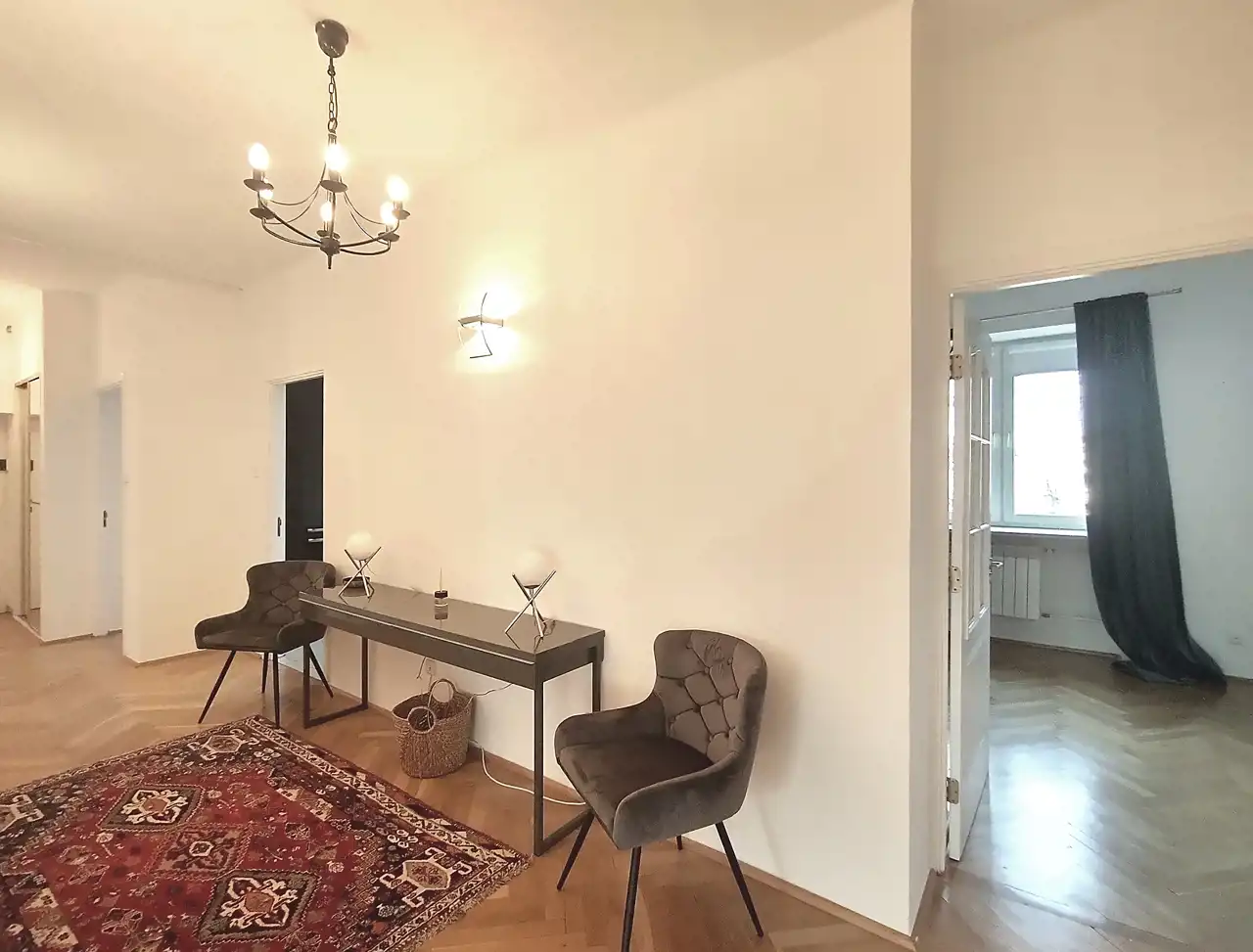 Przestronne, ciche mieszkanie, położone w prestiżowej lokalizacji, przy Trakcie Królewskim, w zadbanej, kamienicy odbudowanej po II wojnie Światowej, przy ul. Nowy Świat 47A. Wspaniała lokalizacja i brak uciążliwości wynikający z położenia w II linii zabudowy(cisza, spokój). Mieszkanie jest po remoncie, wszystkie instalacje są wymienione, wyposażone są kuchnia i łazienka. Mieszkanie składa się z pokoju dziennego o powierzchni ok. 27mkw., dwóch sypialni 21 i 17mkw., niezależnej kuchni o powierzchni ok. 10mkw. z zabudową , dużej łazienki 7 mkw. , oddzielnej toalety oraz przedpokoju o powierzchni ok. 10 mkw. Opłaty dla administracji wynoszą ok. 1580 zł miesięcznie. Istnieje możliwość dokupienia sąsiedniego lokalu o powierzchni ok. 50 m.kw.