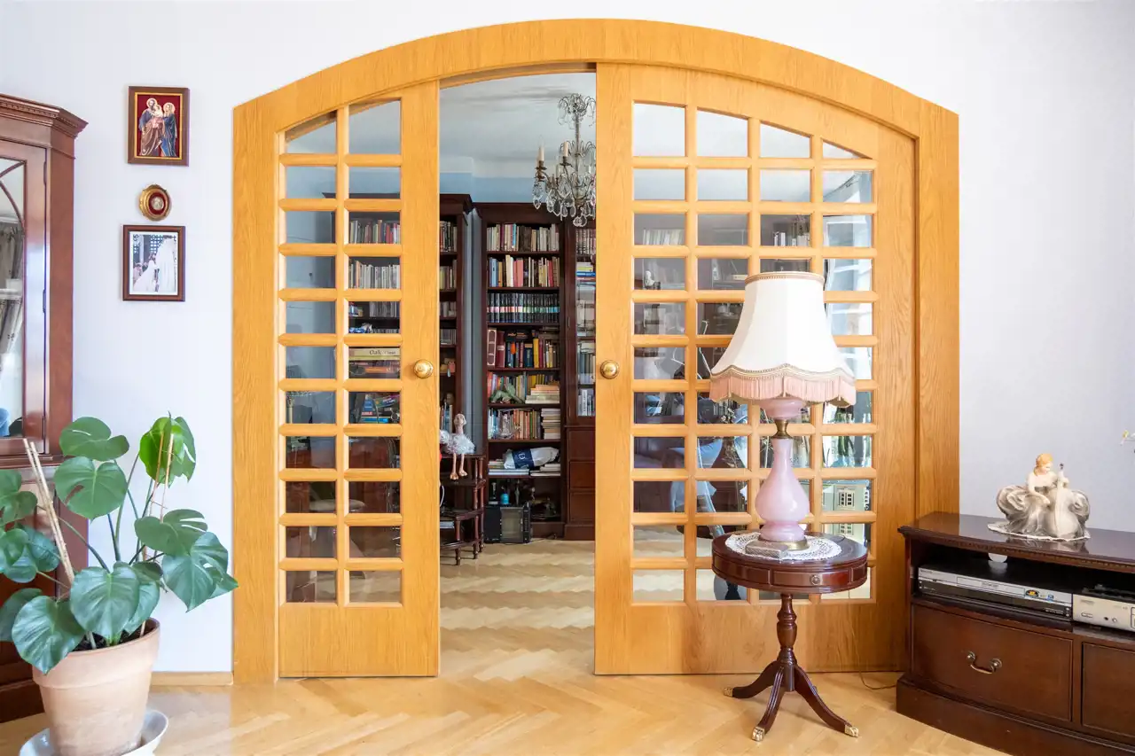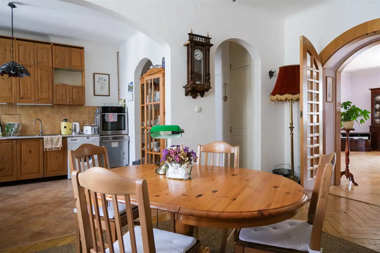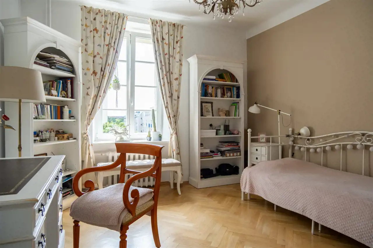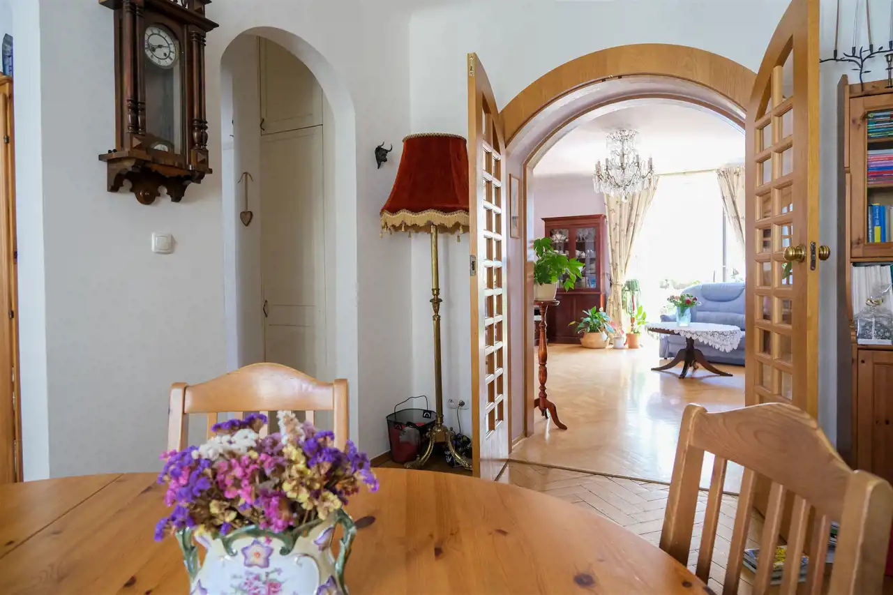 Na podłogach znajduje się zadbany parkiet, a wyjątkowa stolarka drzwiowa dodaje wnętrzom niepowtarzalnego charakteru.
