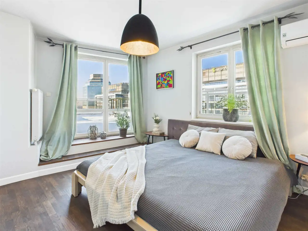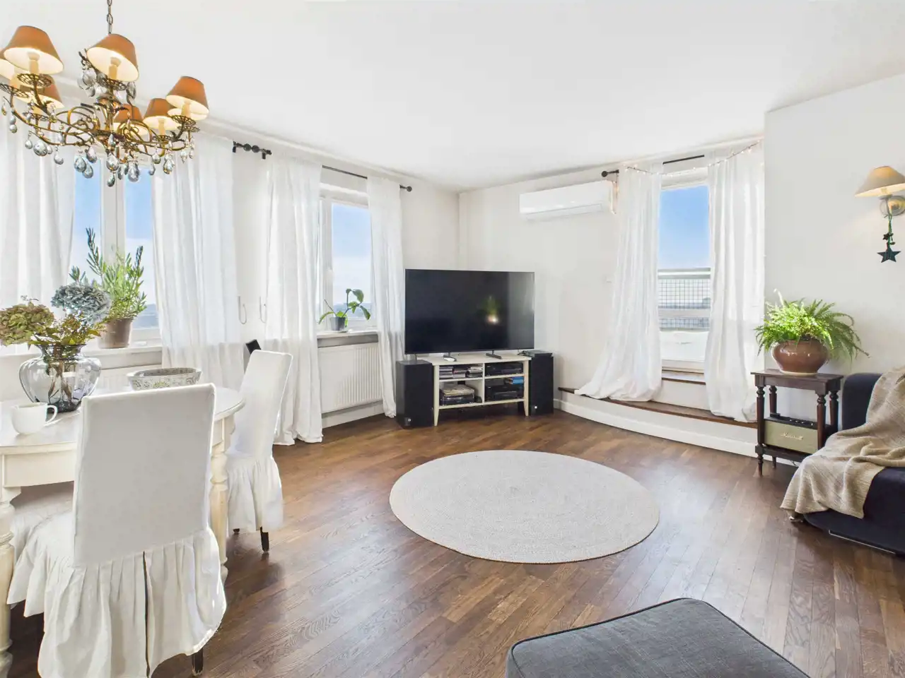 Dla jeszcze większego komfortu mieszkańców apartament wyposażono w wideodomofon, system alarmowy oraz klimatyzację (dwie jednostki - w salonie oraz głównej sypialni).