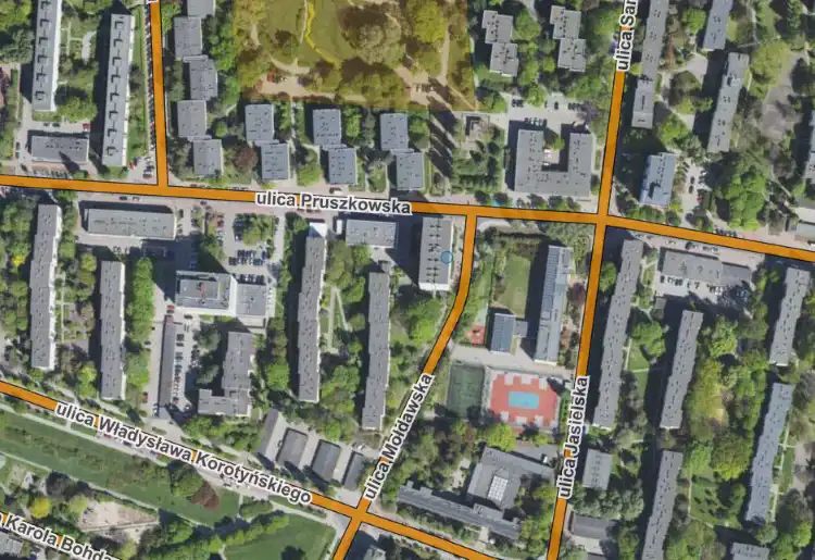 Na terenie dzielnicy Ochota, u zbiegu ul. Mołdawskiej i Pruszkowskiej. Bezpośrednie sąsiedztwo stanowi zabudowa mieszkaniowa wielorodzinna z podobnego okresu, zieleń międzyblokowa, punkty handlowo-usługowe, obiekty użyteczności publicznej. przystanki autobusowe komunikacji miejskiej przy ul. odległości ok. 140 m, przystanki tramwajowe przy ul. Grójeckiej w odległości ok. 950 m.