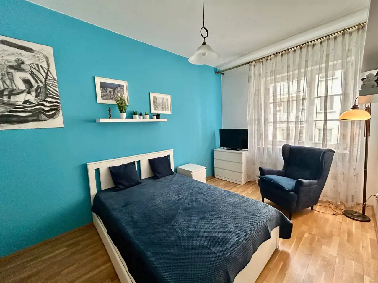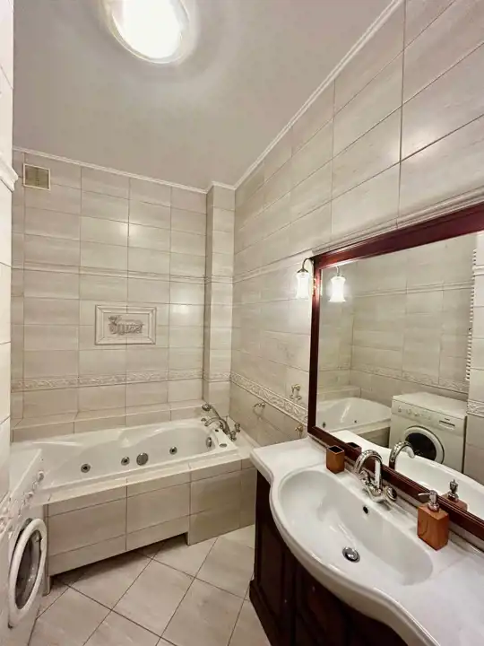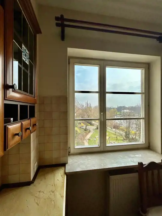 Jest to najbardziej pożądany adres do zamieszkania na Pradze Południe. Osiedle bardzo dobrze zagospodarowane i zarządzane. Apartament składa się z efektownego, prawie 34-metrowego salonu z wyjściem na wygodny balkon/taras z widokiem na park i jezioro. Do salonu przylega ponad 11-metrowa kuchnia. Z przestronnego hallu jest wejście do WC i przejście do części prywatnej z wejściami do dwóch sypialni ( 13,6 m2 i 15,2 m2 ) i łazienki. Wnętrza są wysokie (2,95 m) i dobrze doświetlone. Pierwotnie lokal miał 4 pokoje. W załączeniu rzut lokalu przed przebudową. Można przywrócić ten stan i ponownie zaaranżować sypialnię z oknem na park i jezioro. Do lokalu przynależy miejsce parkingowe w garażu podziemnym w cenie 50 000 zł. Położenie doskonałe nie tylko z powodu wyjątkowego widoku, ale również z uwagi na infrastrukturę. Komunikacja: tramwaje i autobusy w odl. 100 m.