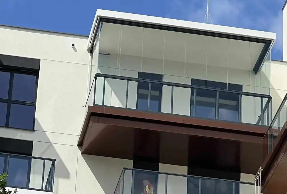 Dwa duże balkony z zadaszeniem i możliwością zasłonięcie w deszczowe dni.