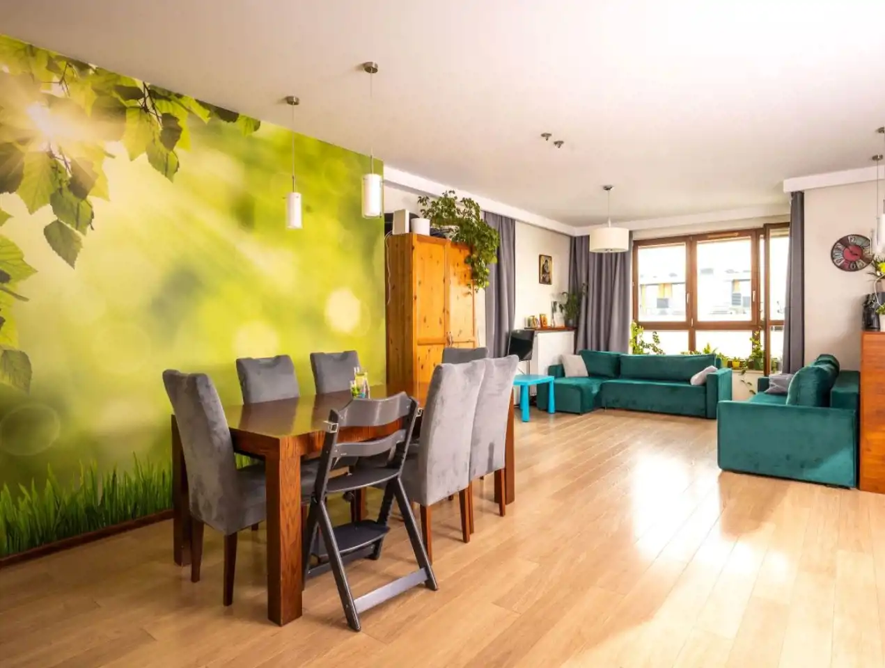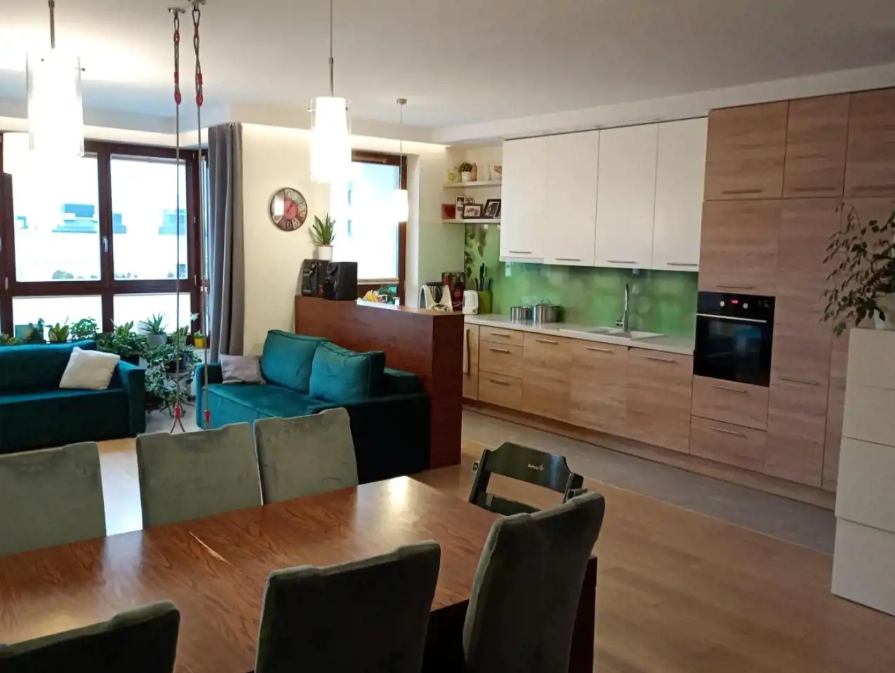 mieszkanie; ciche 4pokoje, jasne, ciepłe, ze wspaniałym widokiem. Przestronny salon z aneksem kuchennym (45m) – z dużymi oknami na południe-wschód - strefa prywatna 3 niezależne sypialnie (10,5m, 11,5m i 12,5m), Łazienka + dodatkowe WC z prysznicem - Taras: 6m Balkon: 4m Mieszkanie usytuowane na . Okna usytuowane są na trzy strony. Wysokość pomieszczeń 270 cm. Stan budynku: apartamentowiec oddany do użytku w 2014, z pięknie utrzymaną zielenią i Do mieszkania przynależą: dwa miejsca oddzielne postojowe w garażu podziemnym oraz zamykany boks ok. 4m przy jednym z miejsc – całość dodatkowo płatna 150.000 zł.
