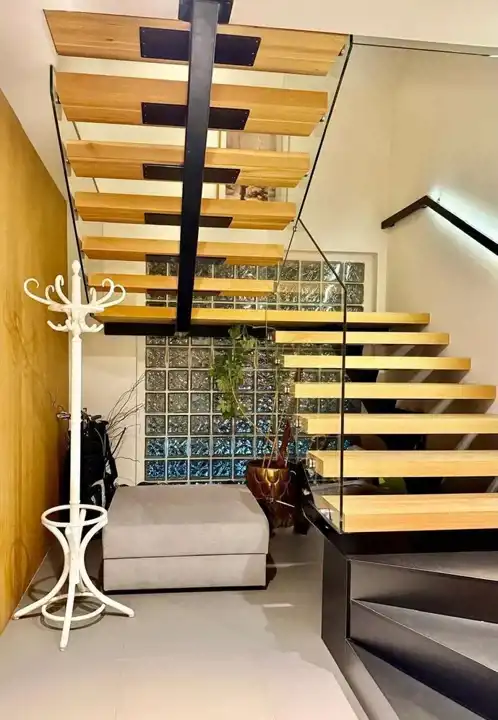 - Eleganckie, drewniane schody prowadzące na drugi poziom.