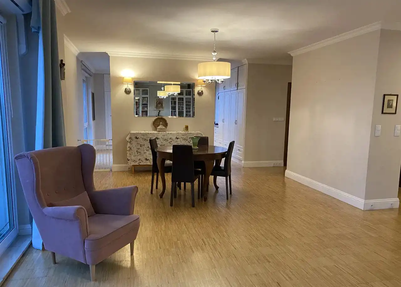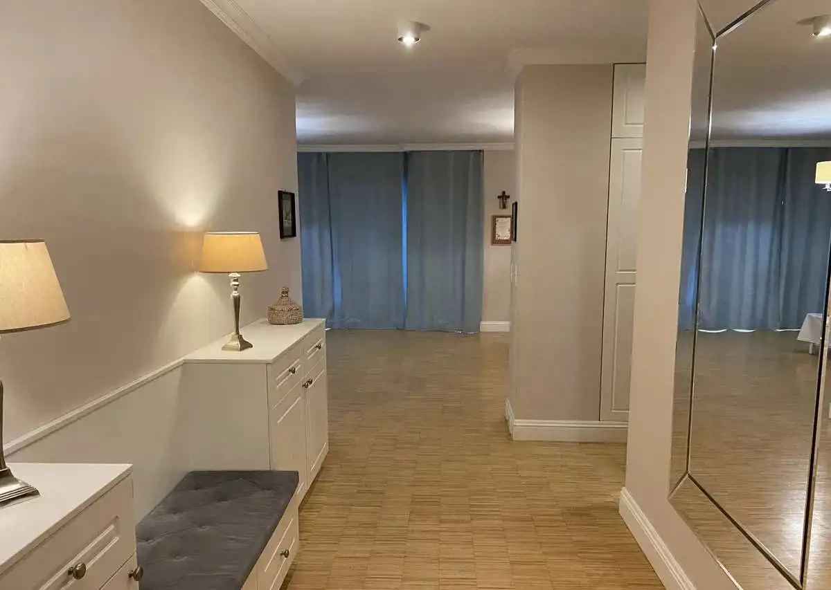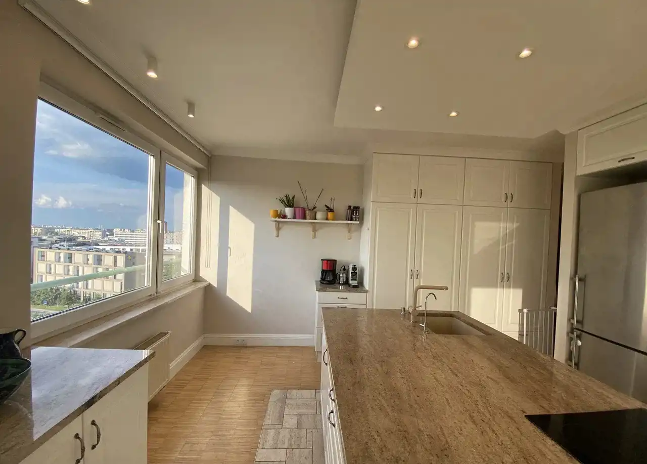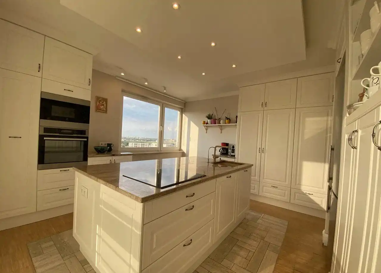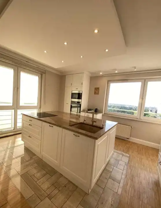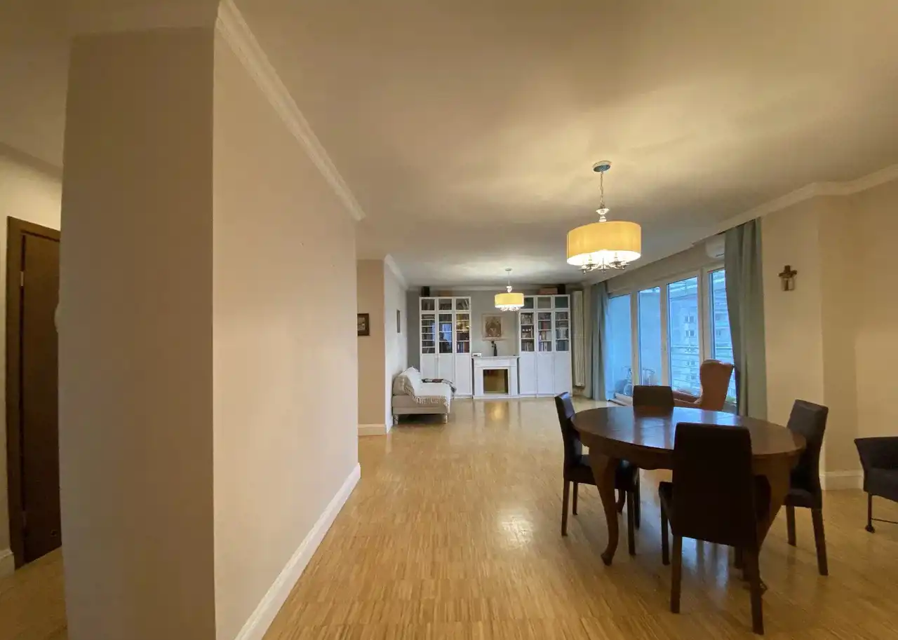 Apartament o powierzchni 145 m2, 5-pokojowy, położony na 11. piętrze w 12-piętrowym budynku z 2003 r., zlokalizowanym na Mokotowie przy alei gen. Sikorskiego.