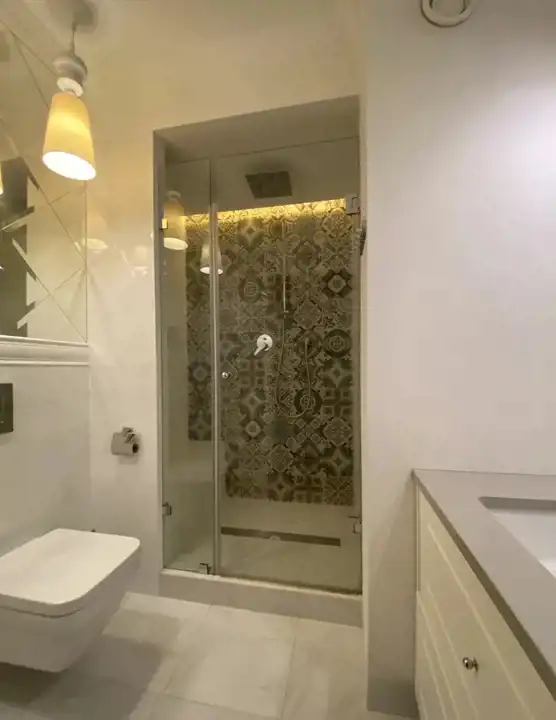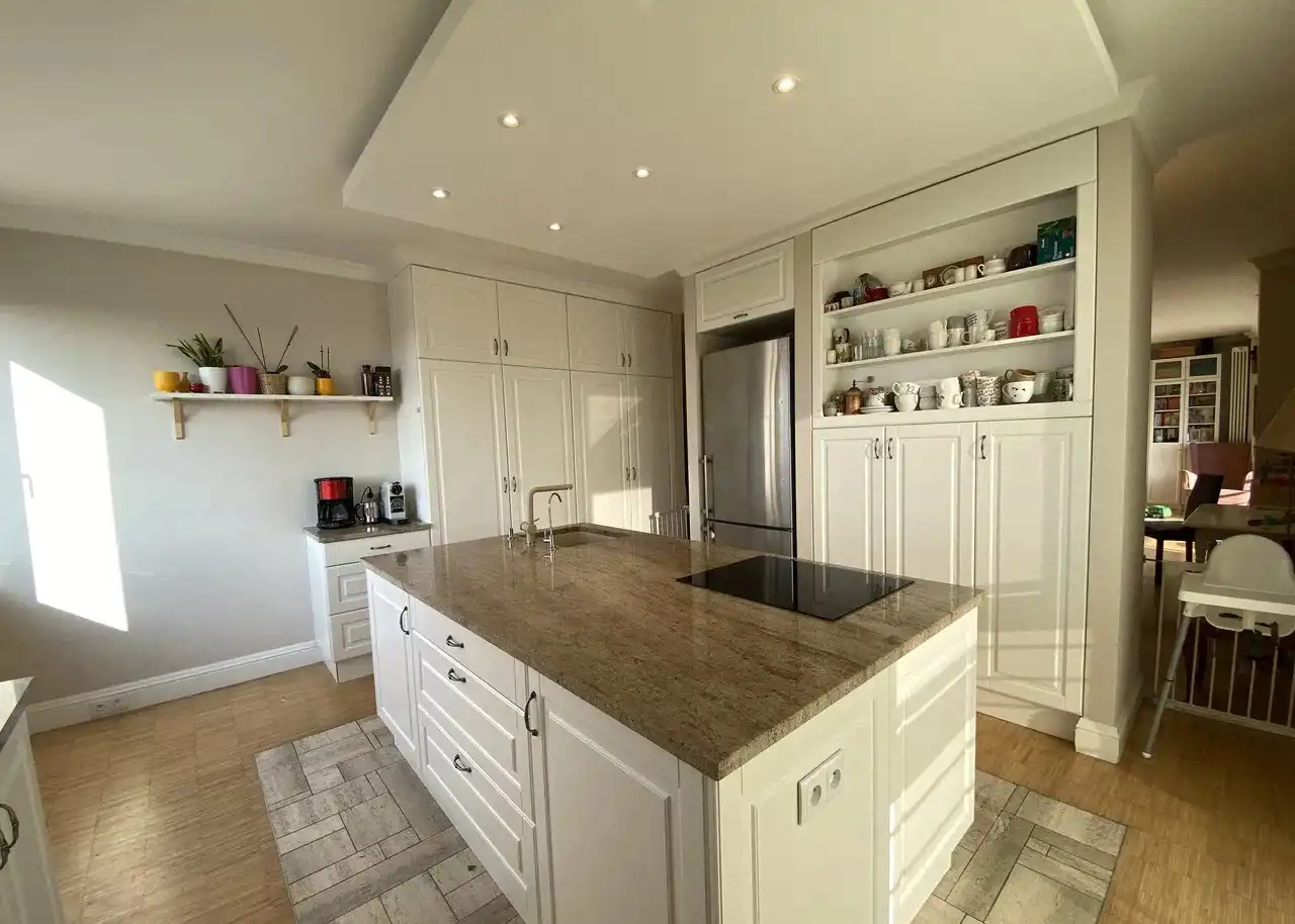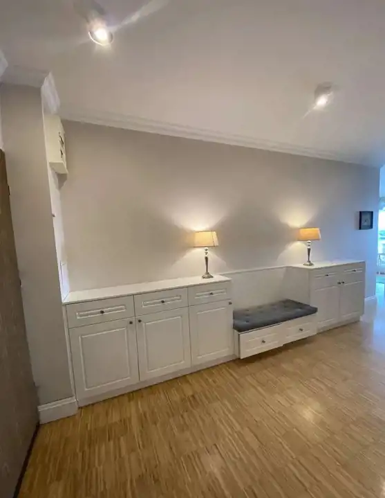 W przedpokoju i w korytarzach liczne wbudowane szafy (łącznie ok 10 m.b.) oraz szafki.