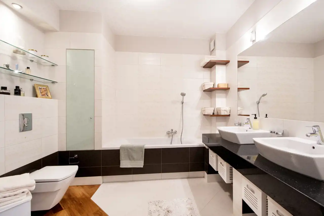 - 2 łazienki (jedna z wanną, druga z prysznicem),