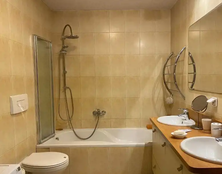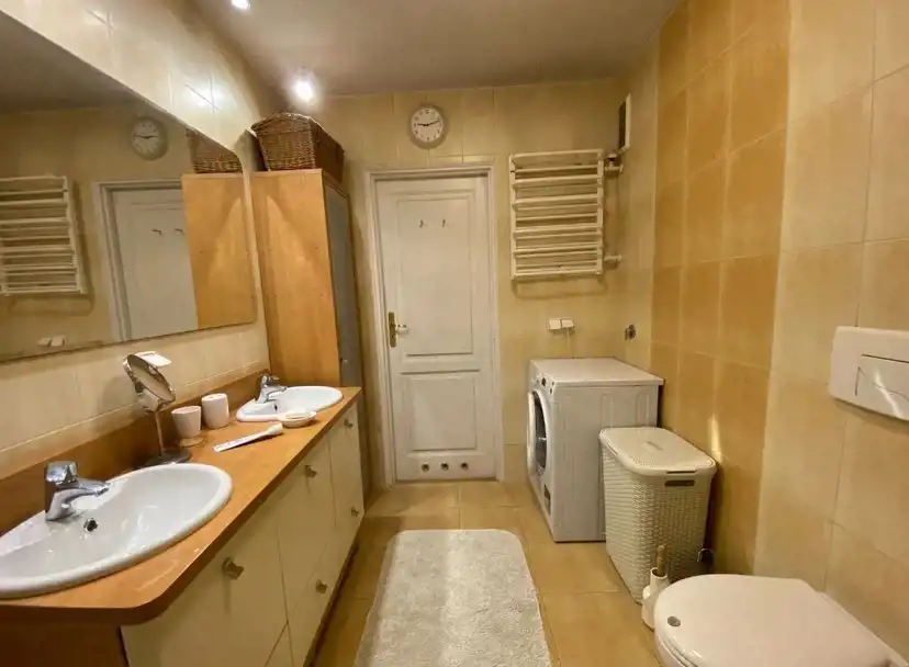 - Główna łazienka z wanną i dwiema umywalkami (6 m²).
