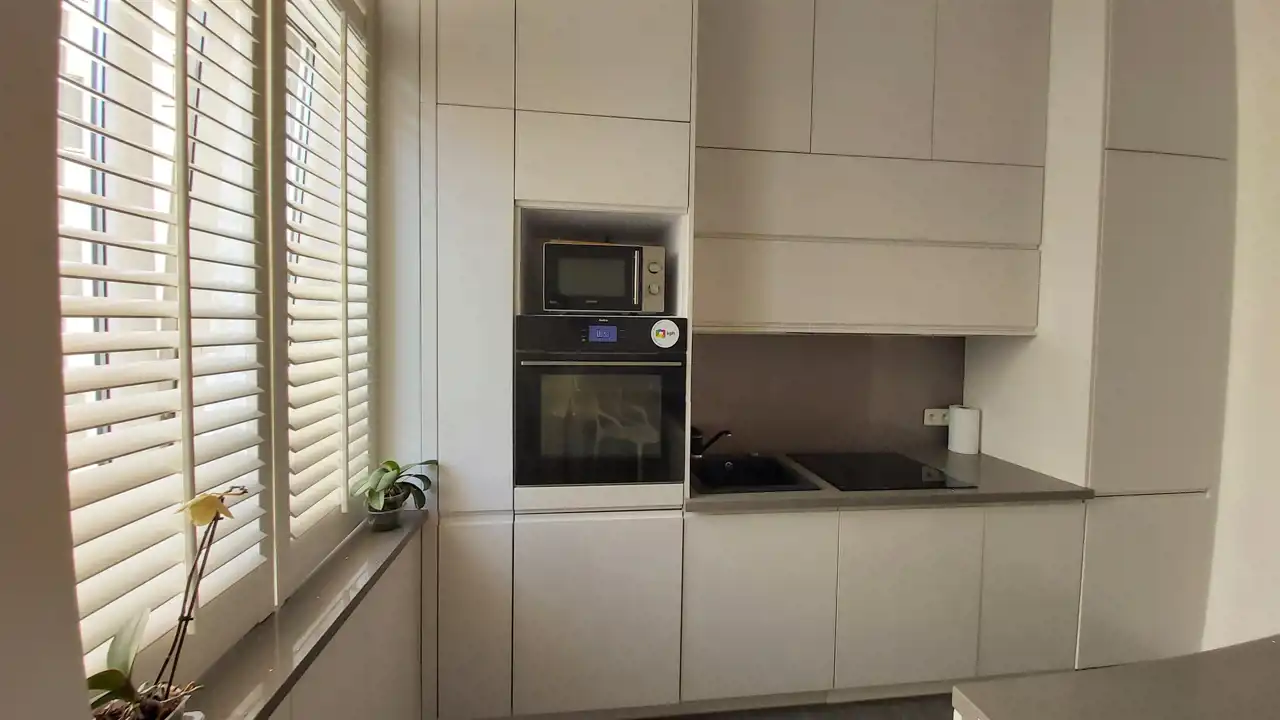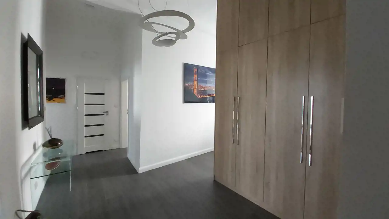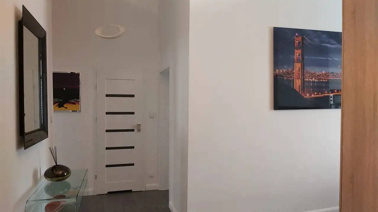 Apartament składa się z 3 pokoi, kuchni, przestronnego holu z wbudowaną na wymiar szafą, kuchni, oraz łazienki.