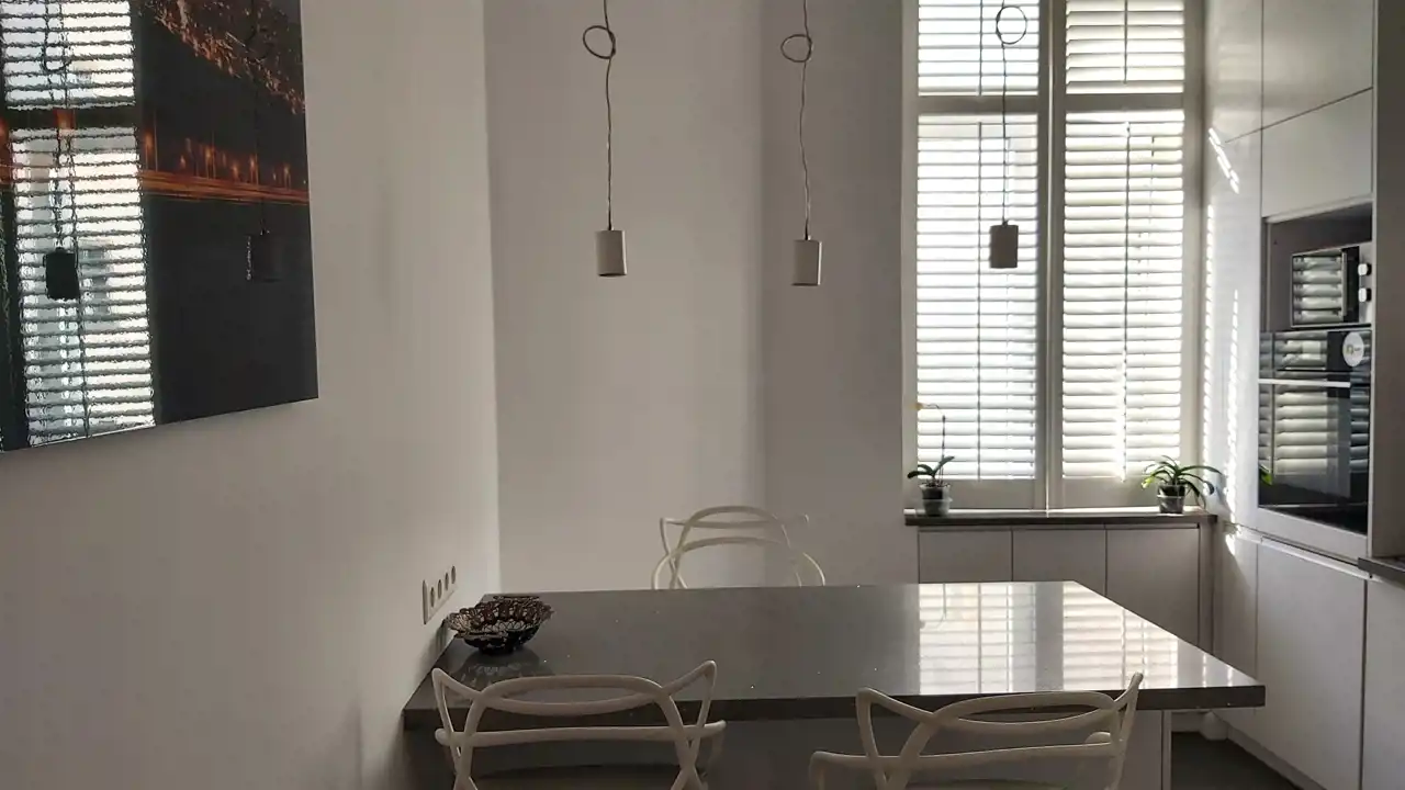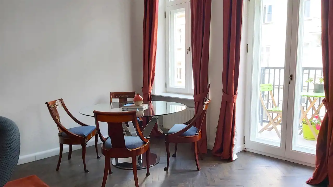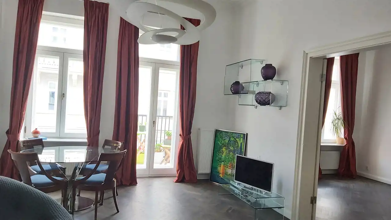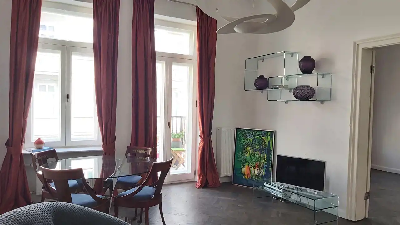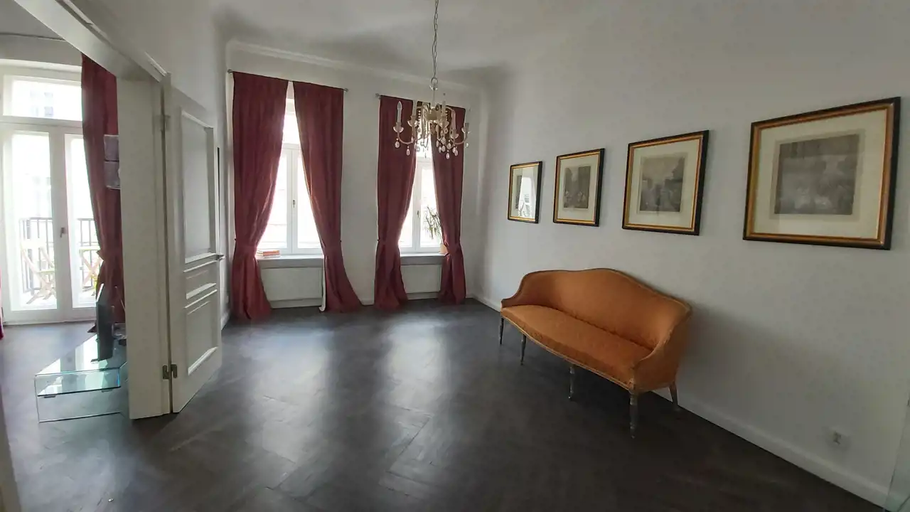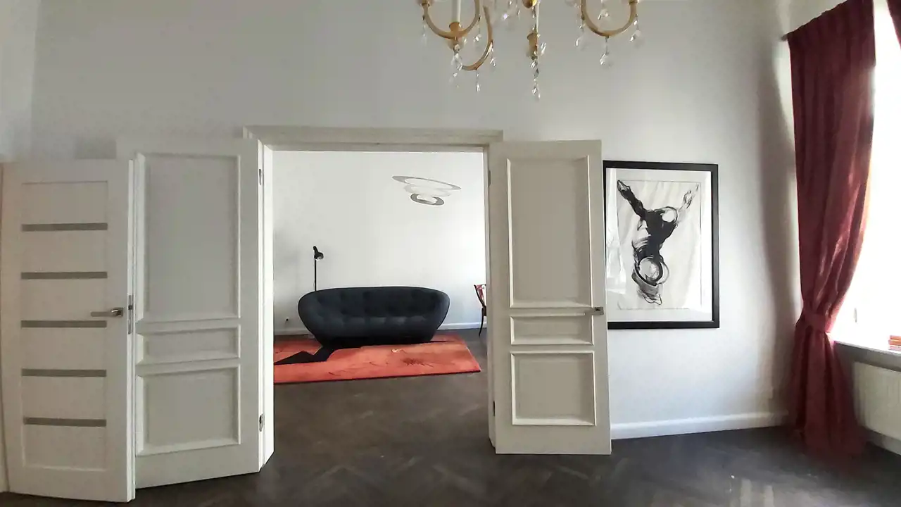 Mieszkanie jest pełne uroku i może kojarzyć się z wnętrzami z paryskich kamienic. Zostało wyremontowane ze smakiem z zachowaniem charakteru przedwojennej kamienicy.