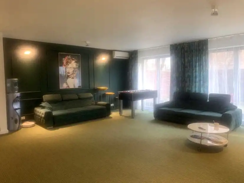- salon o pow. 30 m2 z aneksem kuchennym /całość 40 m2/ z wyjściem do ogrodu o pow. ok. 120 m2