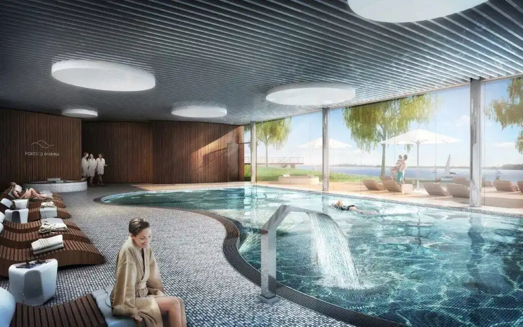 Na terenie inwestycji poza apartamentami znajduje się również restauracja, basen, siłownia, wellness & spa, kort do squasha, kort do padla, plac zabaw, marina, 2 - poziomowy parking podziemny i naziemny, komórki lokatorskie, pralnia oraz recepcja i ochrona.