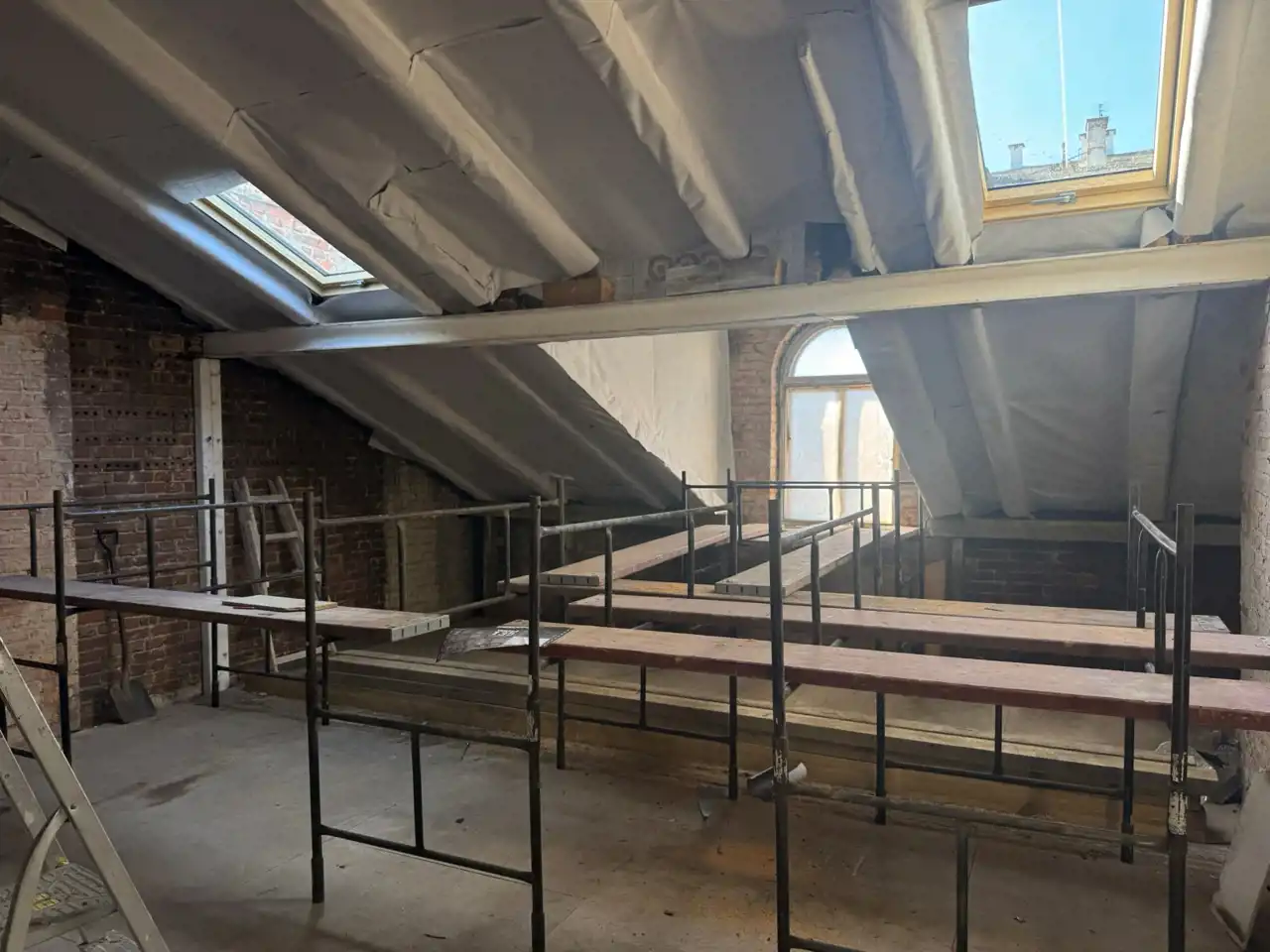 Lokal o całkowitej powierzchni 161 m2 usytuowany na poddaszu kamienicy (4 piętro). Spora przestrzeń daje olbrzymie możliwości aranżacji wnętrza. Mieszkanie posiada duże przeszklenia dachowe oraz stylowe, półokrągłe okna.