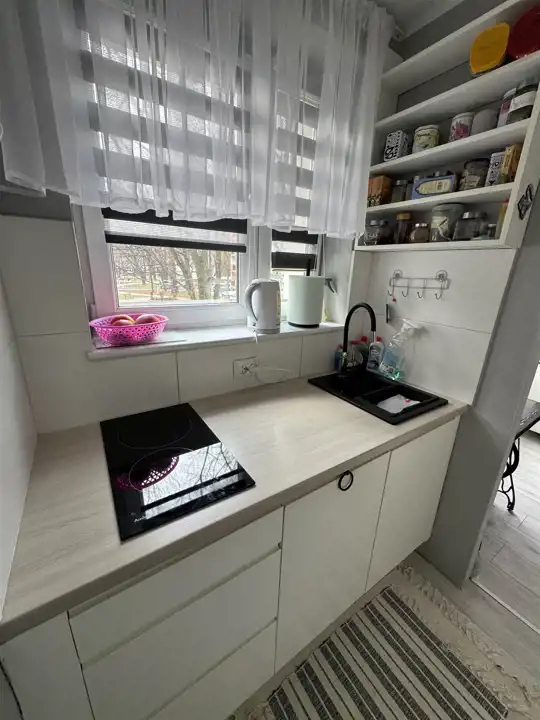 Lokal przeszedł generalny remont około 5 lat temu. Wymieniona została instalacja elektryczna, wykonano nowe okna oraz drzwi antywłamaniowe. Instalacje wodne zostały wymienione przez administrację. Kuchnia znajduje się we wnęce, posiada okno i została wykonana w zabudowie na wymiar. Mimo niewielkich rozmiarów jest bardzo dobrze zaprojektowana i pozwala na wygodne przechowywanie dzięki zabudowie poprowadzonej od góry do dołu.