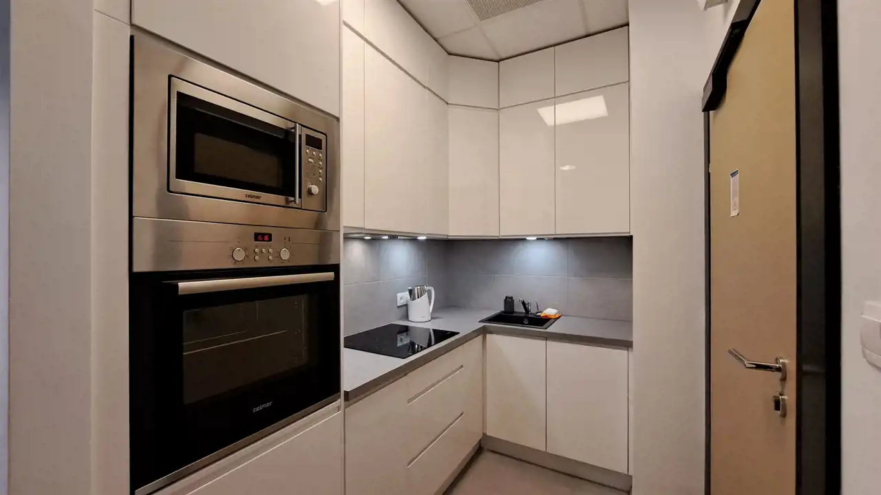 Mieszkanie o powierzchni ponad 23 metrów mimo niewielkiej powierzchni ma wszystko, co potrzeba, by dobrze się w nim czuć - całe wnętrze jest gustownie urządzone i w pełni umeblowane. Najemca znajdzie tu spore łóżko, szafę, nowoczesny aneks kuchenny i elegancką łazienkę, w naprawdę dobrym tonie.