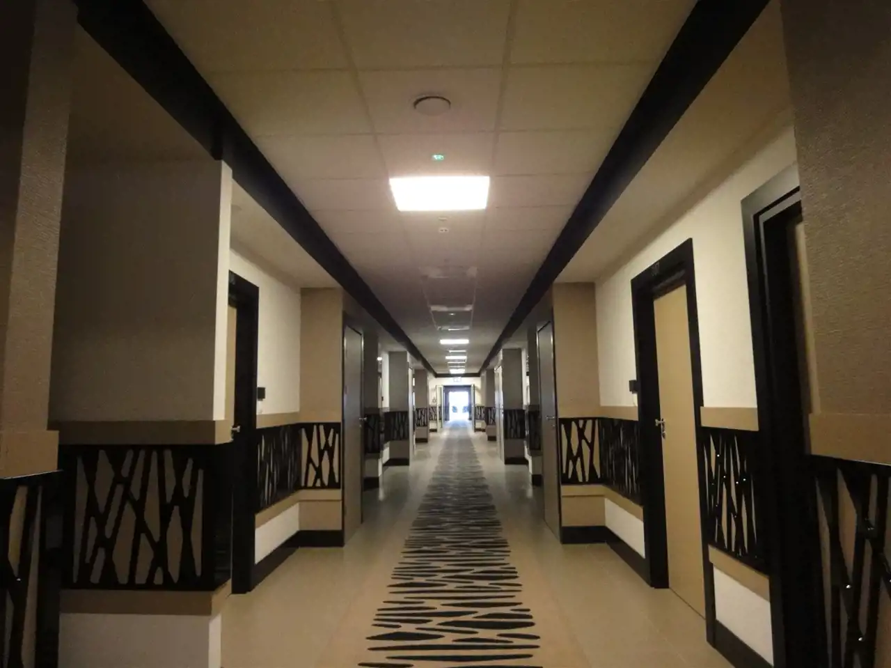 Budynek został wybudowany kilka lat temu, podobnie wszystkie w sąsiedztwie - na parterze recepcja, pod budynkiem garaż.