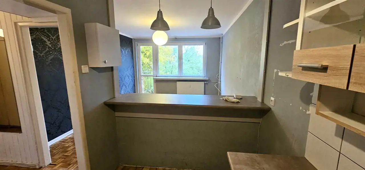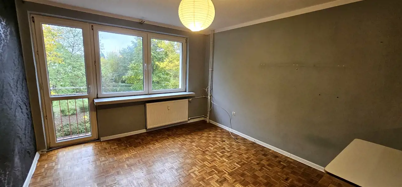 Dwupokojowe mieszkanie przy ulicy Wojciechowskiego 40 w Ursusie z oknami wychodzącymi na Park Hassów.