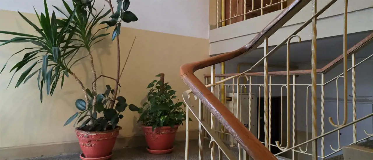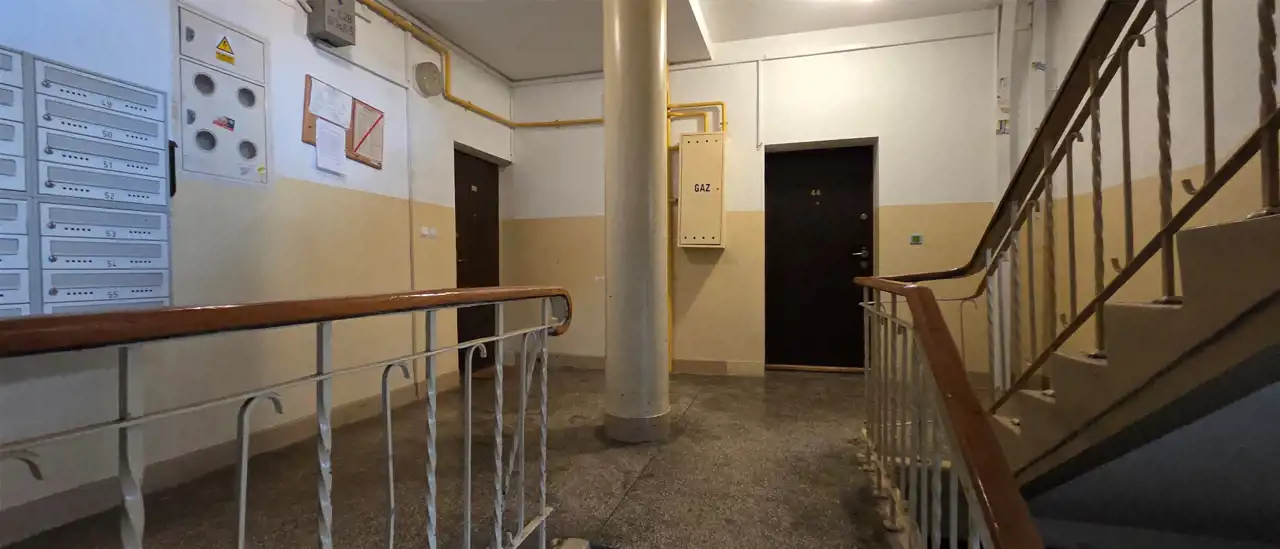 Budynek z cegły z początku lat pięćdziesiątych. 3 piętro bez windy. Budynek po remoncie, zadbany, otynkowany.
