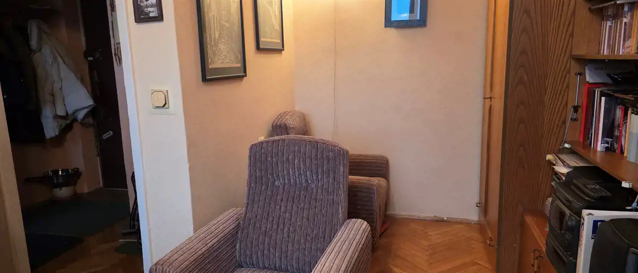 Mieszkanie czyste, po wymianie mediów; w standardzie sprzed kilkunastu lat. Na podłodze parkiet, starszego typu glazury i szafki w kuchni.