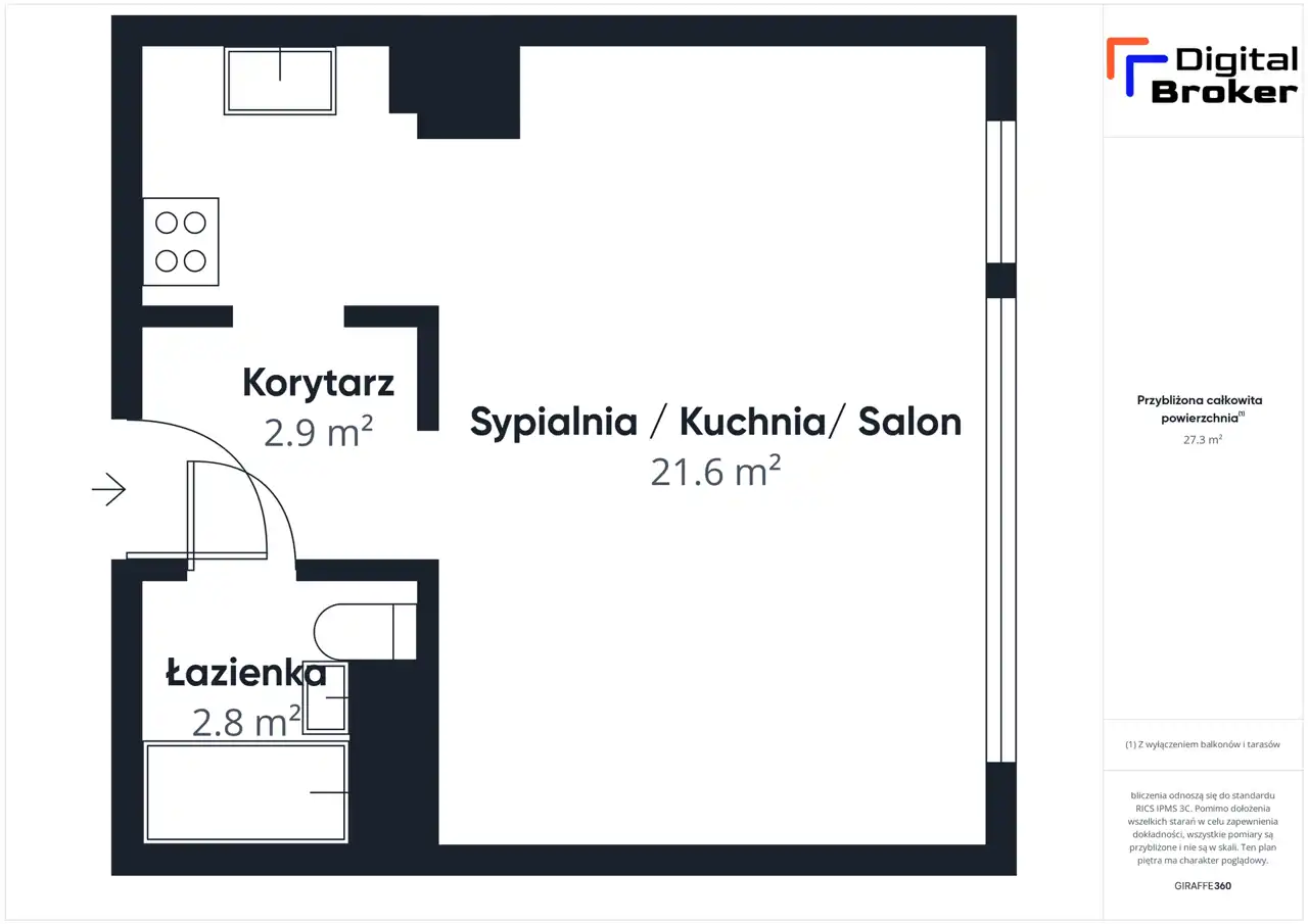 - Charakterystyka mieszkania 28.2 m2, 1 pokój