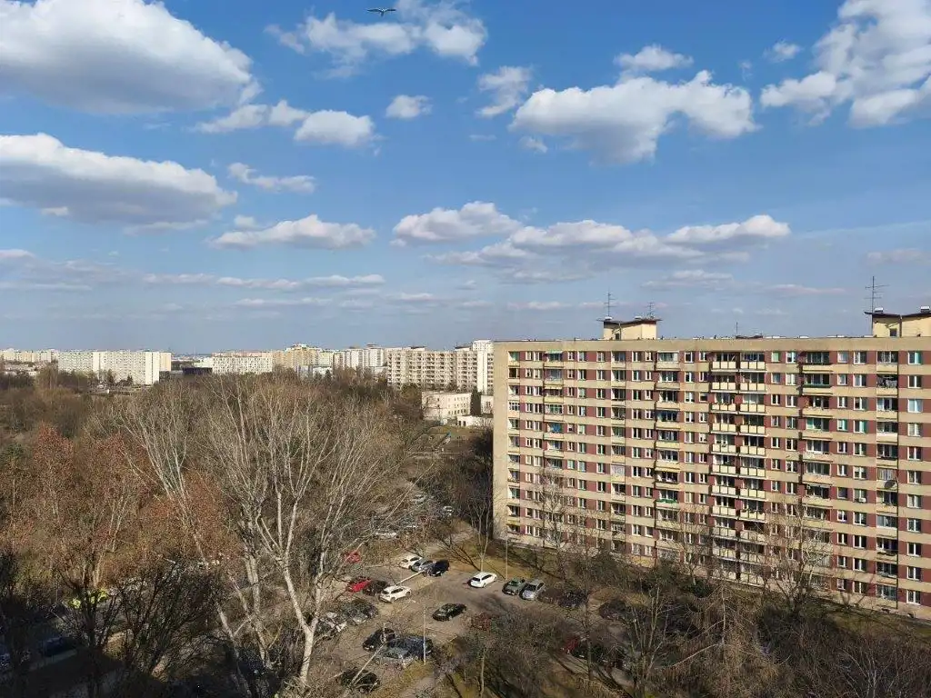 Mieszkanie jest widne, z okien widać Park Bródnowski i przestrzeń między budynkami.