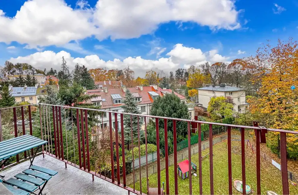- Super rozkład, oddzielna kuchnia, duża szafa, balkon z widokiem na drzewa i wille.