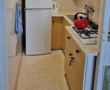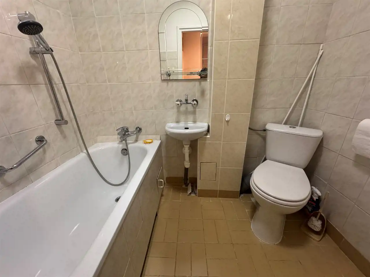 Ustawny pokój dzienny z bardzo ładnym widokiem z okna, kuchnia we wnęce, łazienka z wanną oraz mały przedpokój z szafą.