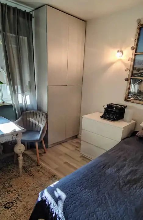 Meble robione na wymiar (łazienka, kuchnia, szafa w pokoju), piekarnik BOSCH, płyta indukcyjna BOSCH