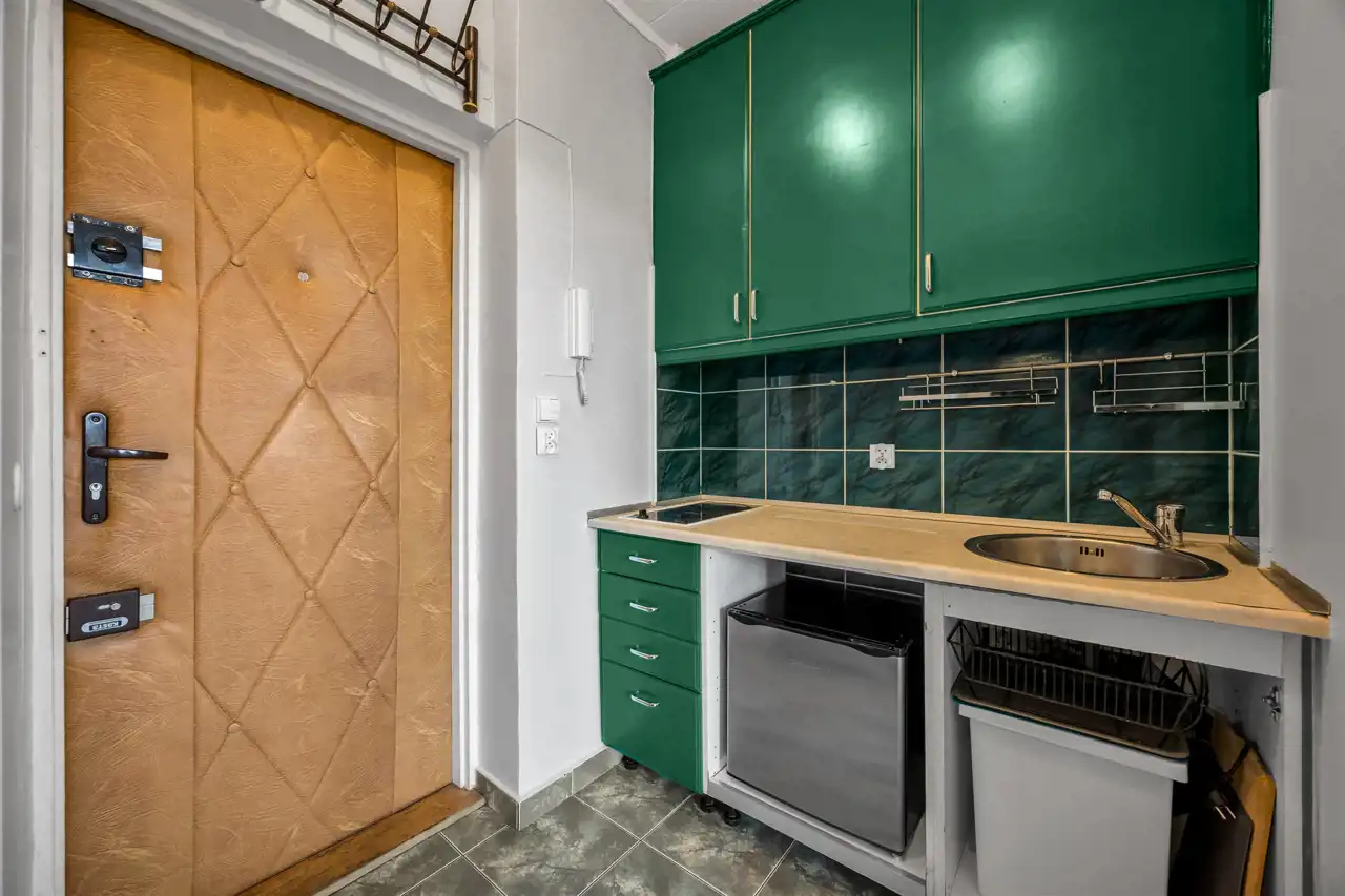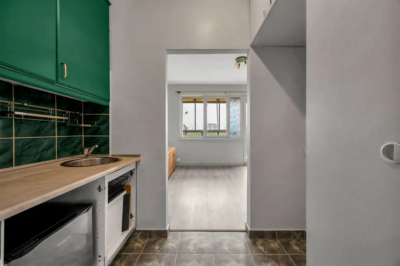Mieszkanie ma status lokalu rozkładowego – pomimo niewielkiego metrażu oferuje wygodną kuchnię, pełną łazienkę oraz ustawny pokój dzienny z wyjściem na zabudowaną loggię o powierzchni ok. 6 m². Oficjalna powierzchnia lokalu to 20,85 m² (loggia nie jest wliczona do metrażu użytkowego). Lokal jest bardzo słoneczny i dobrze doświetlony.