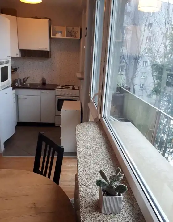 - Oddzielna kuchnia z oknem.