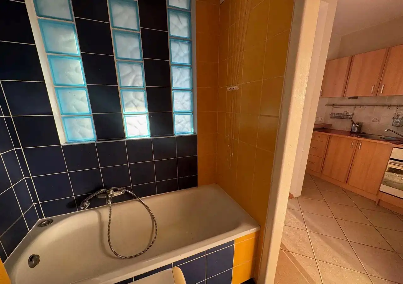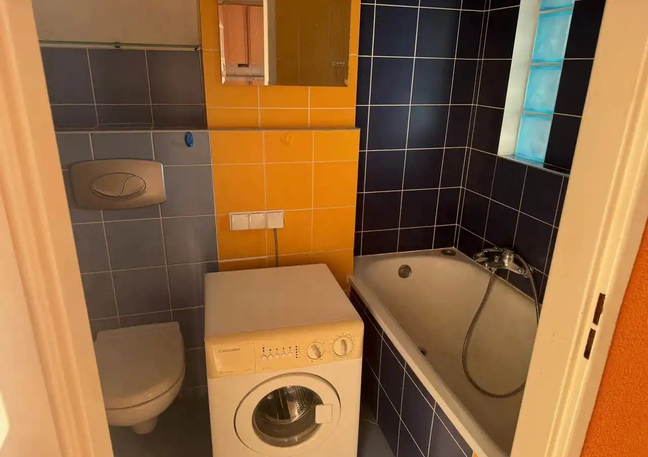 - łazienka z wanną i pralką,